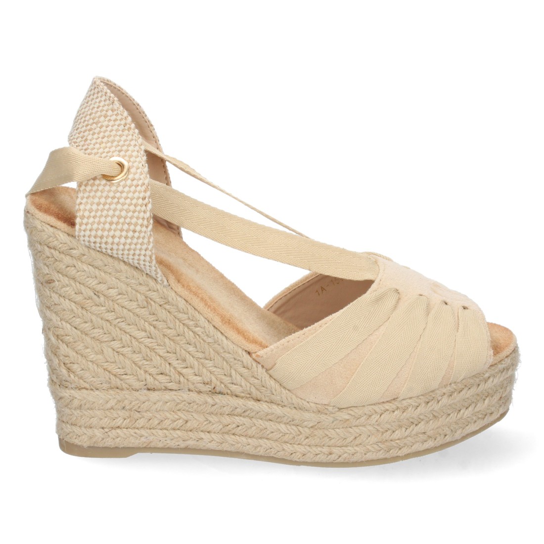 Sandalia de Cuña para Mujer, Forrada de Yute, con Pala Abierta, y Cierre de Cordones, Primavera Verano 2022