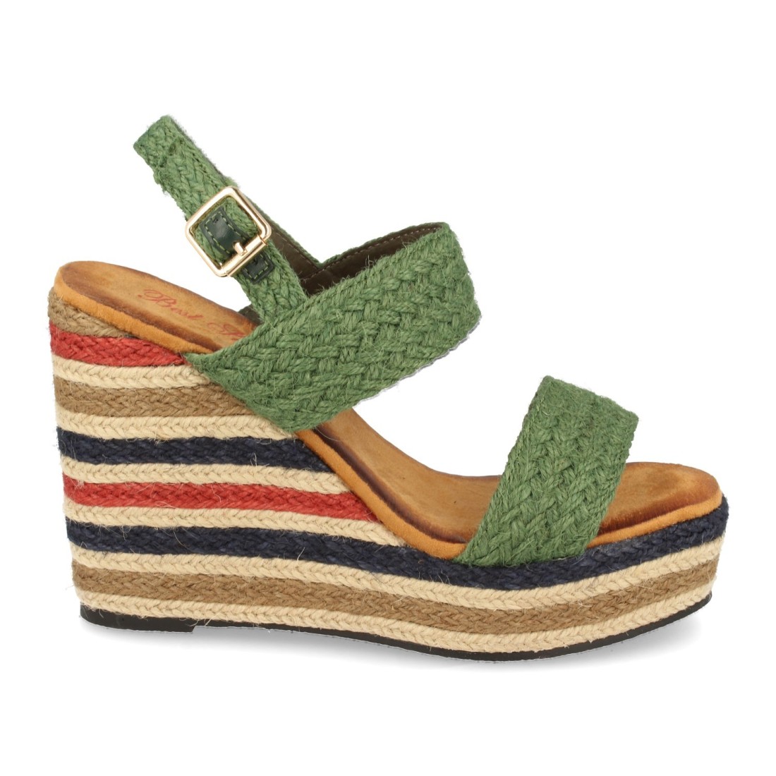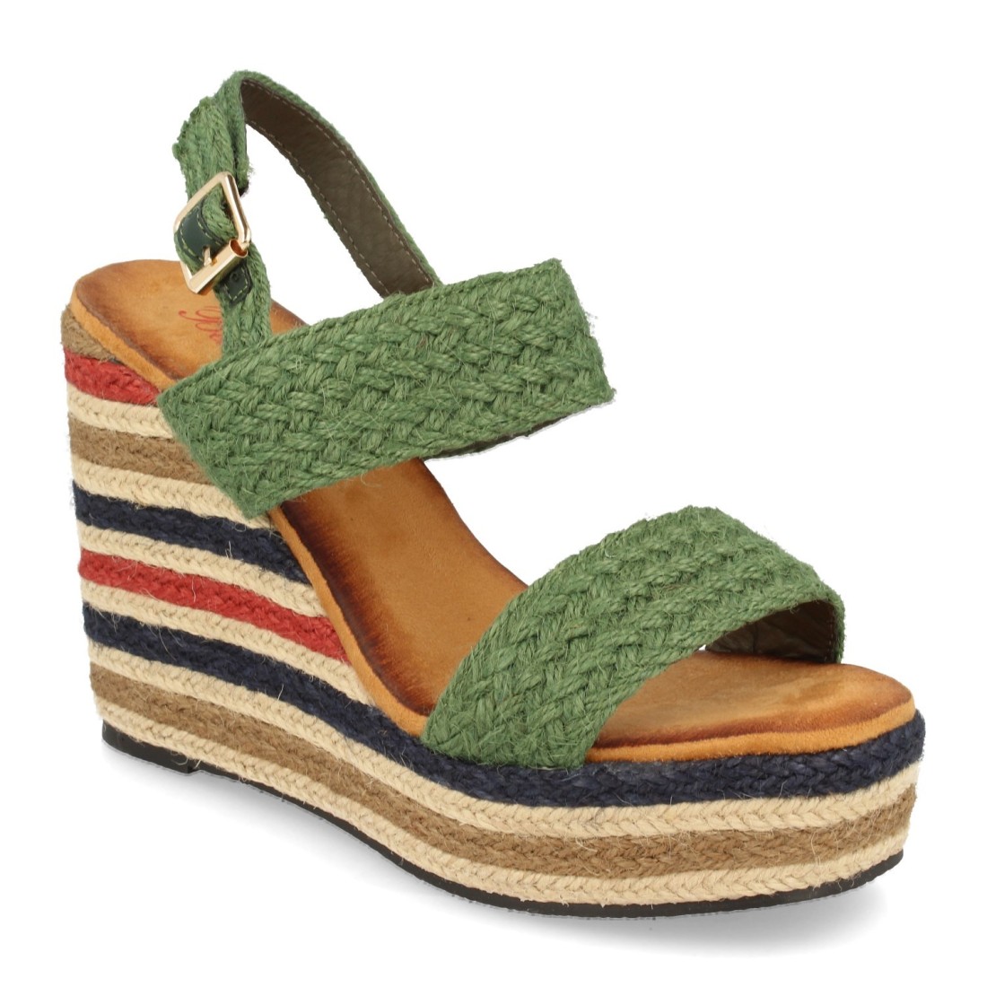 Sandalia de Cuña con Yute Multicolor y Hebillas