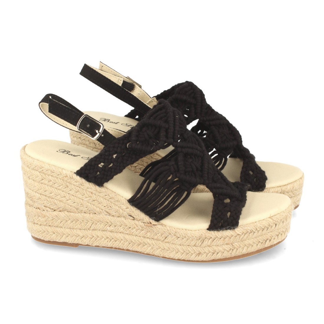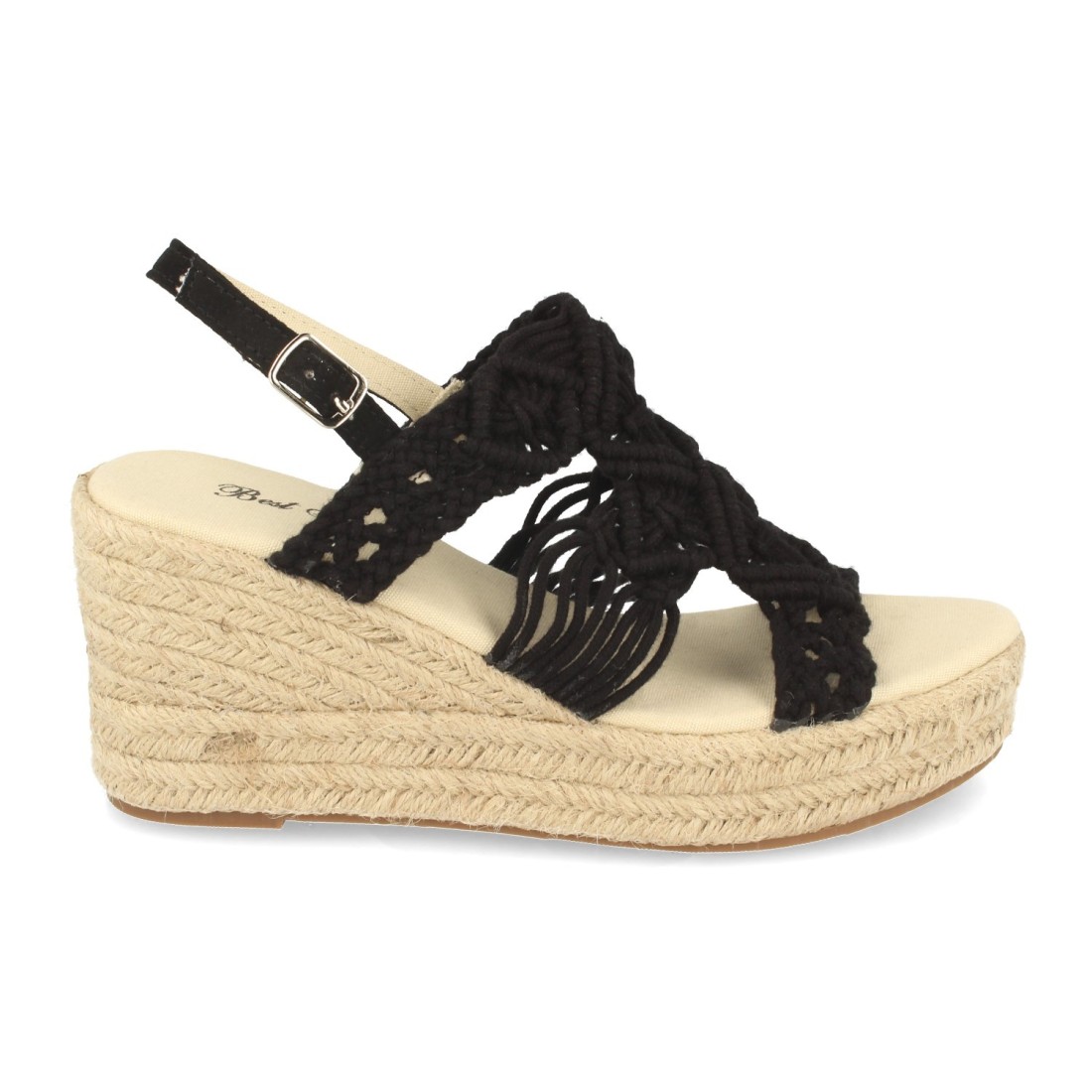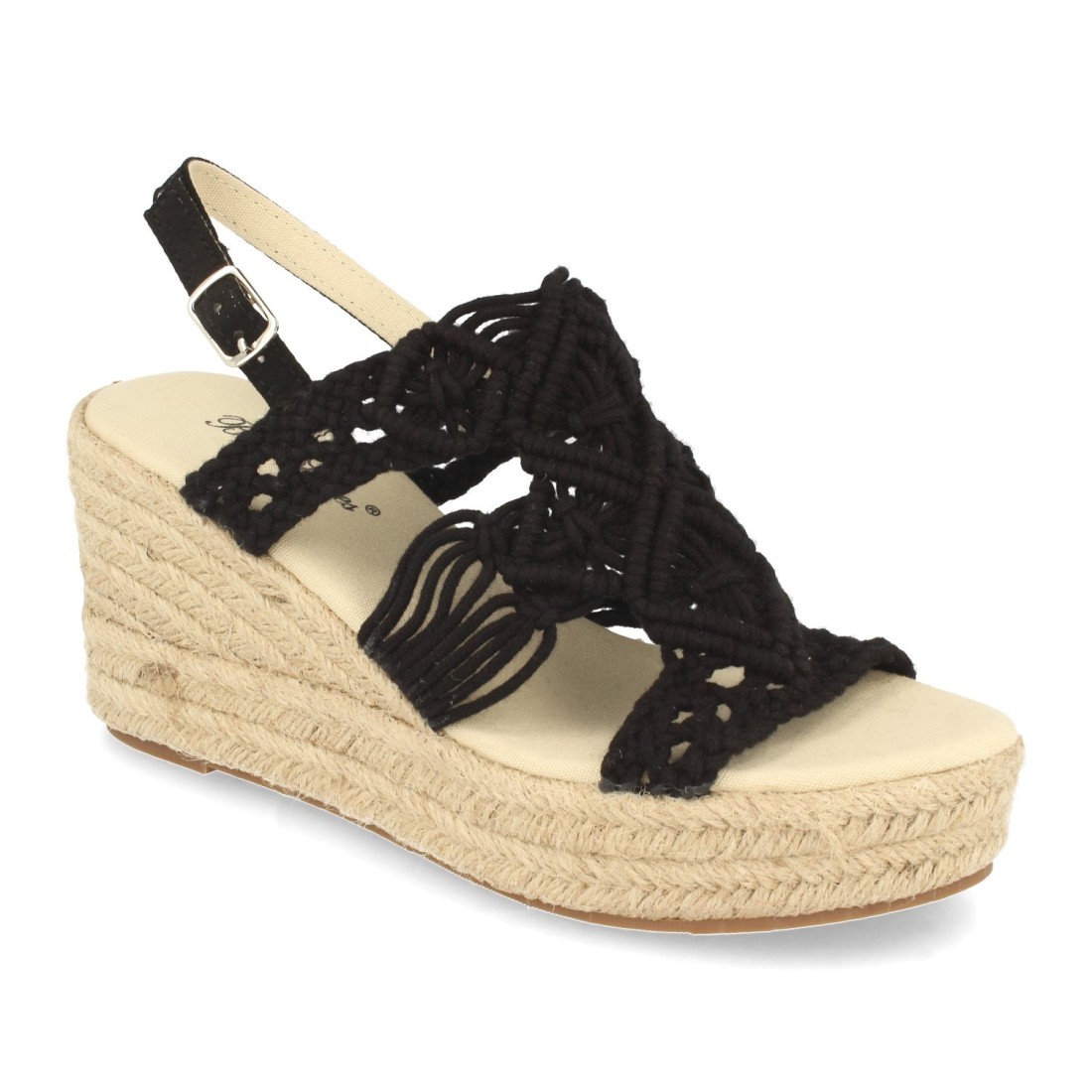Sandalia de Cuña para Mujer, Forrado de Yute, con Pala Entrelazada de Cuerda, y Cierre de Hebilla, Primavera Verano 2021