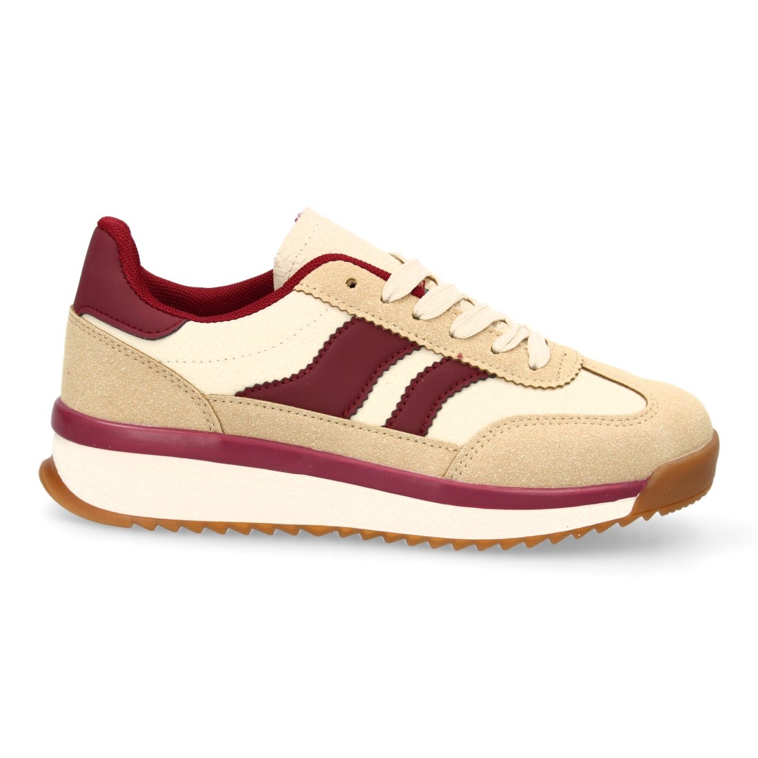 Zapatilla plana para mujer con cierre de cordones. Diseño moderno con contraste lateral. Estilo retro, ideal para la temporada de otoño invierno.