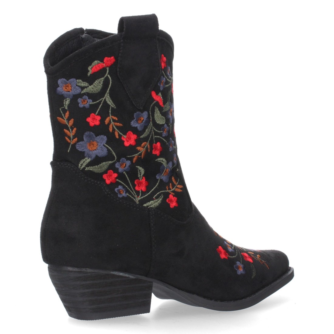 Botin de tacon comodo para mujer con estampado de flores en la caña y en la pala.