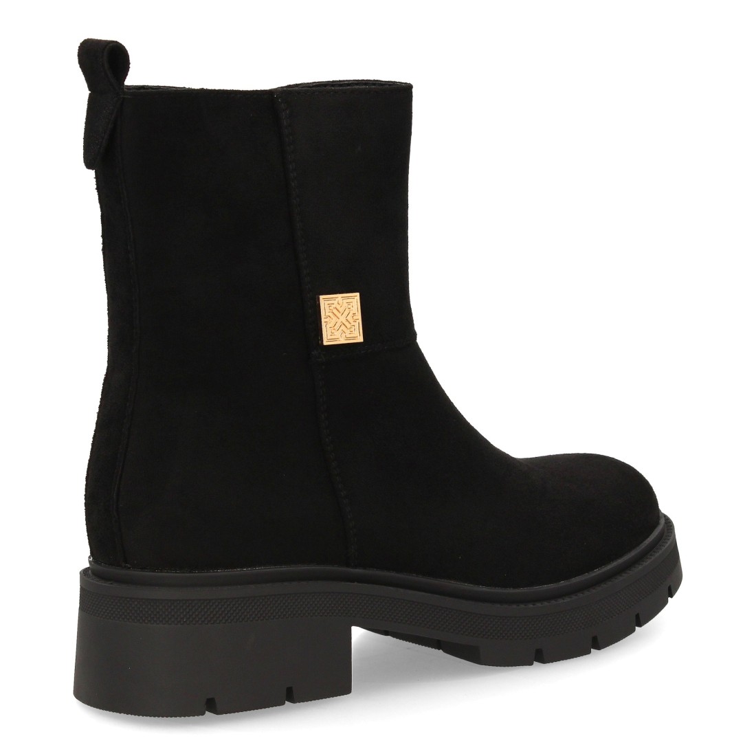 Botín moderno con estampado liso.Incorpora un adorno metálico lateral. Suela robusta con plataforma. Ideal para mujer en temporada Otoño Invierno. Cierre de cremallera