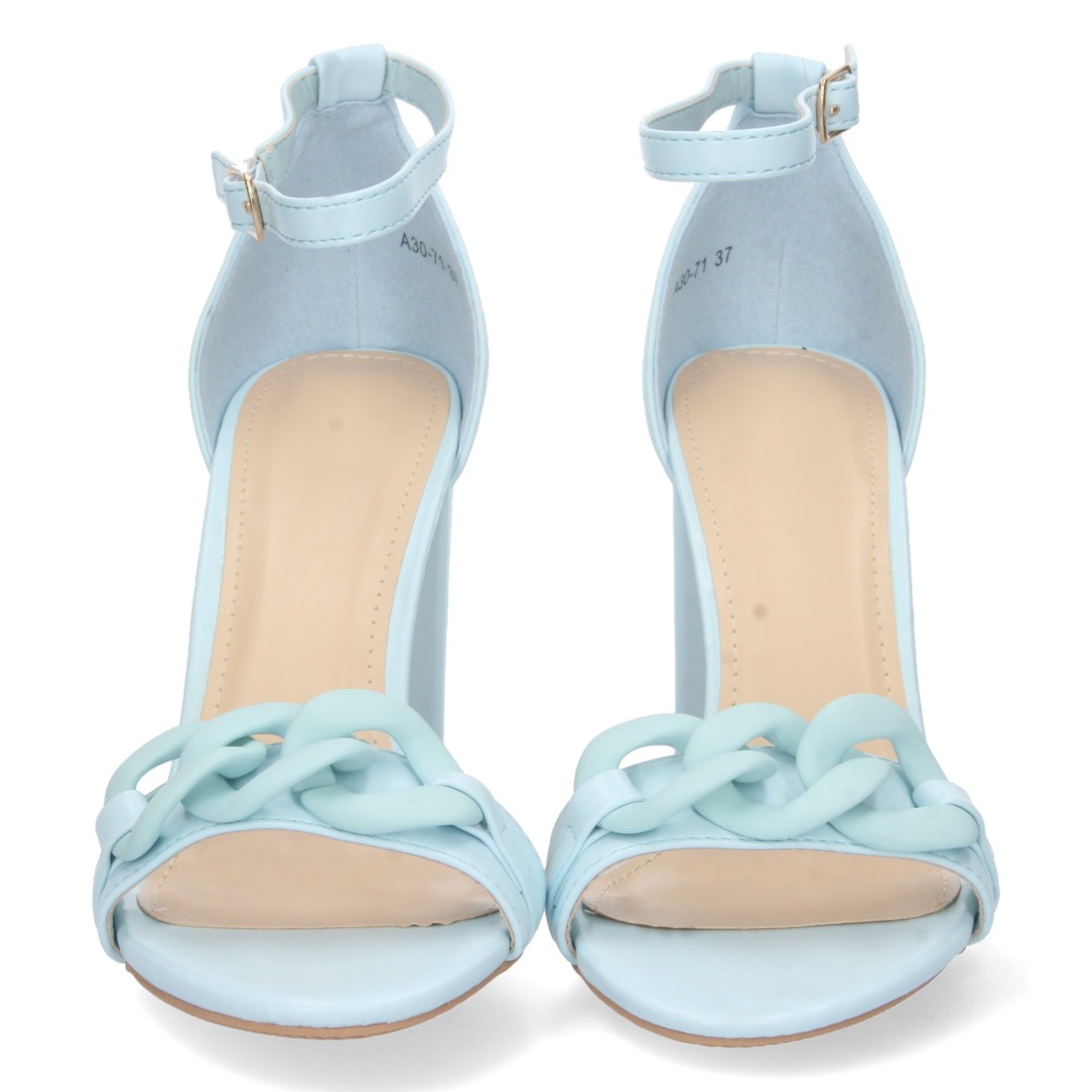 Sandalia de Tacon Alto para Mujer, Comodo, Pala con Cadena, y Cierre Ankle Strap de Hebilla, Primavera Verano 2023