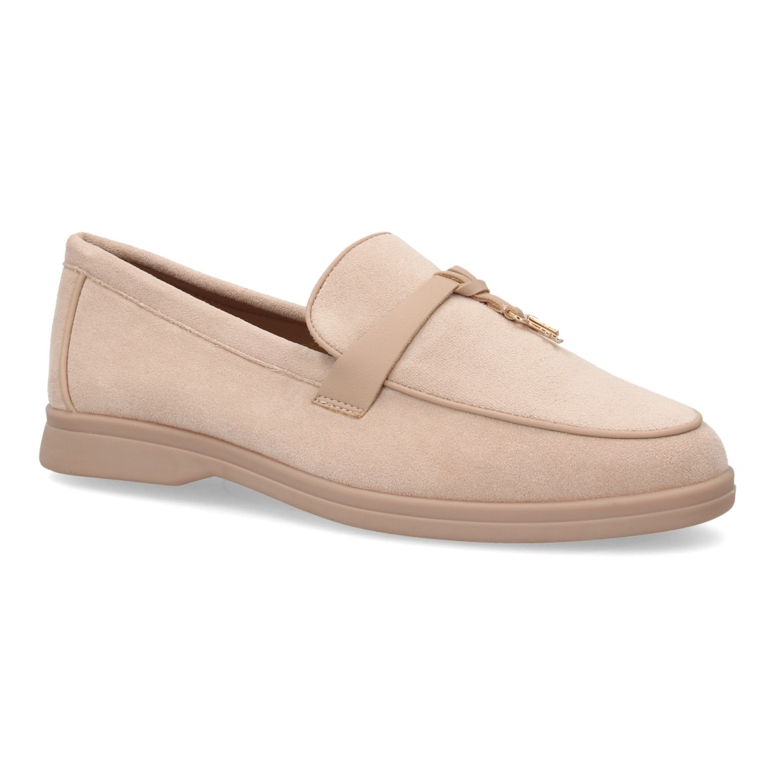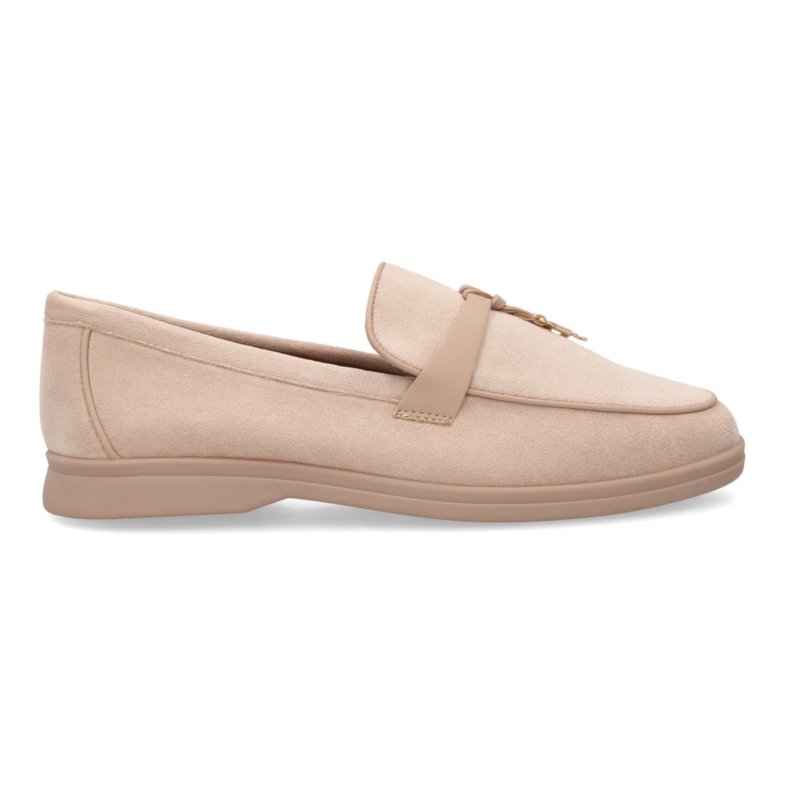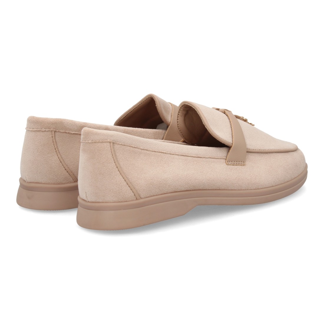 Mocasín para mujer con diseño elegante, estampado liso en colores pastel. Detalles metálicos en el antifaz, suela a tono, ligera y comoda. Ideal para enventos formales o día a día.