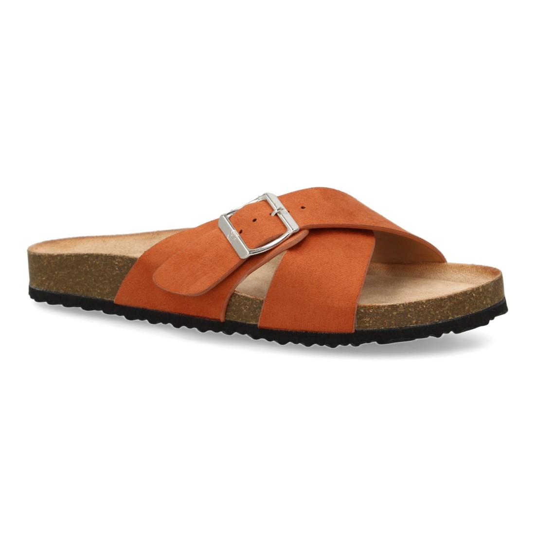Sandalia Plana de Mujer, Pala entrecruzada, con Planta Anatomica de Bio, y Hebilla, Primavera Verano