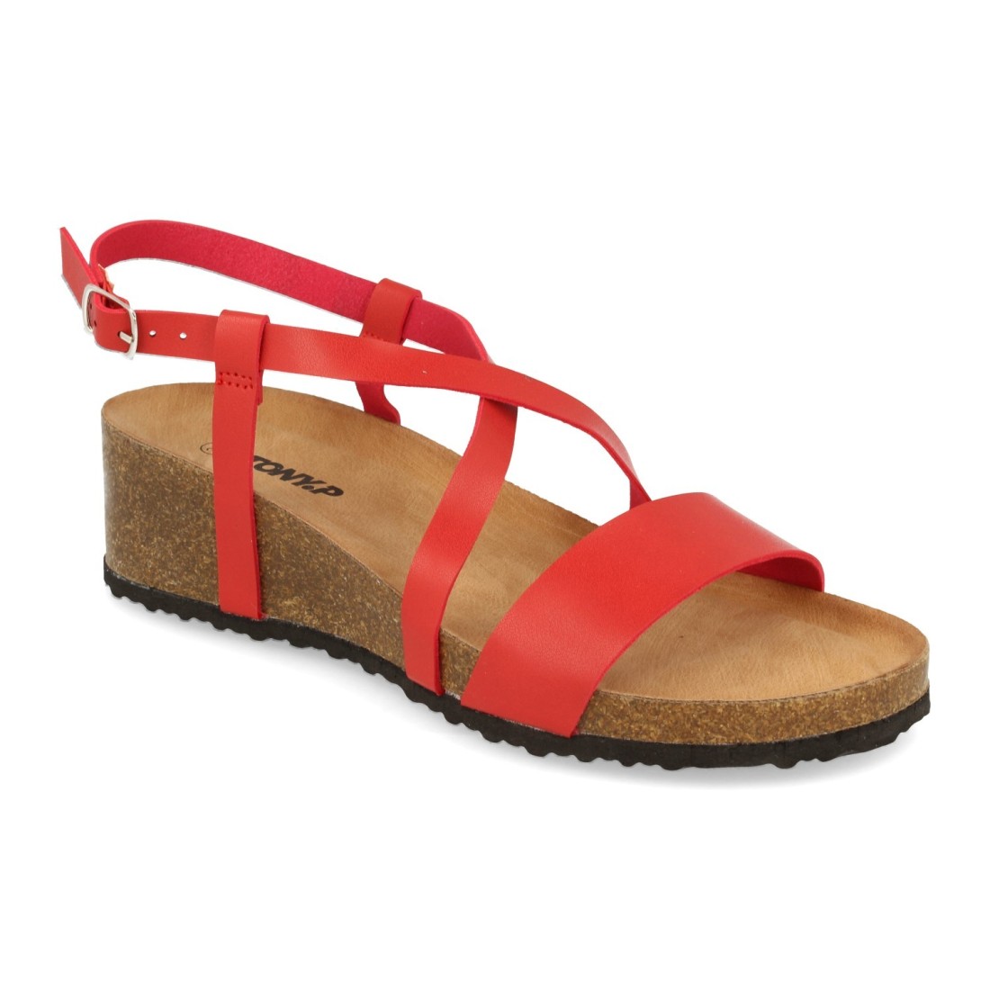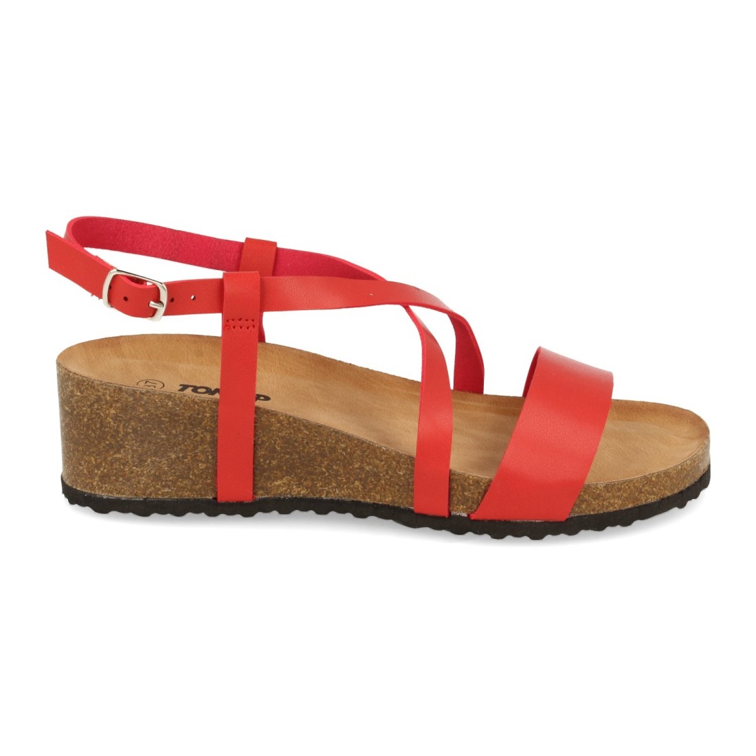 Sandalia de Cuña con Tias Cruzadas y Hebilla