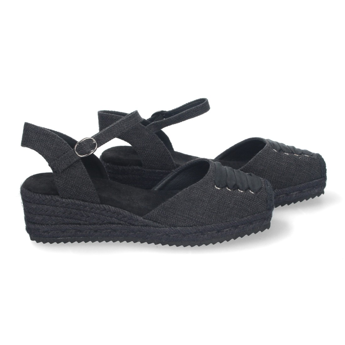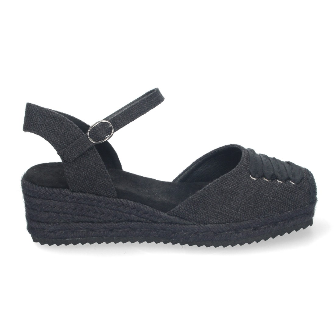 Sandalia de Cuña para Mujer, Cómoda y Elegante, Forrada de Yute con Adorno en la Pala y Cierre de Hebilla.