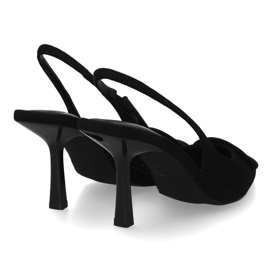 Zapato destalonado de mujer con tacón y punta fina, acabado perforado aporta ligereza y transpirabilidad, cierre de talón elástico, opción perfecta para eventos, oficina o eventos