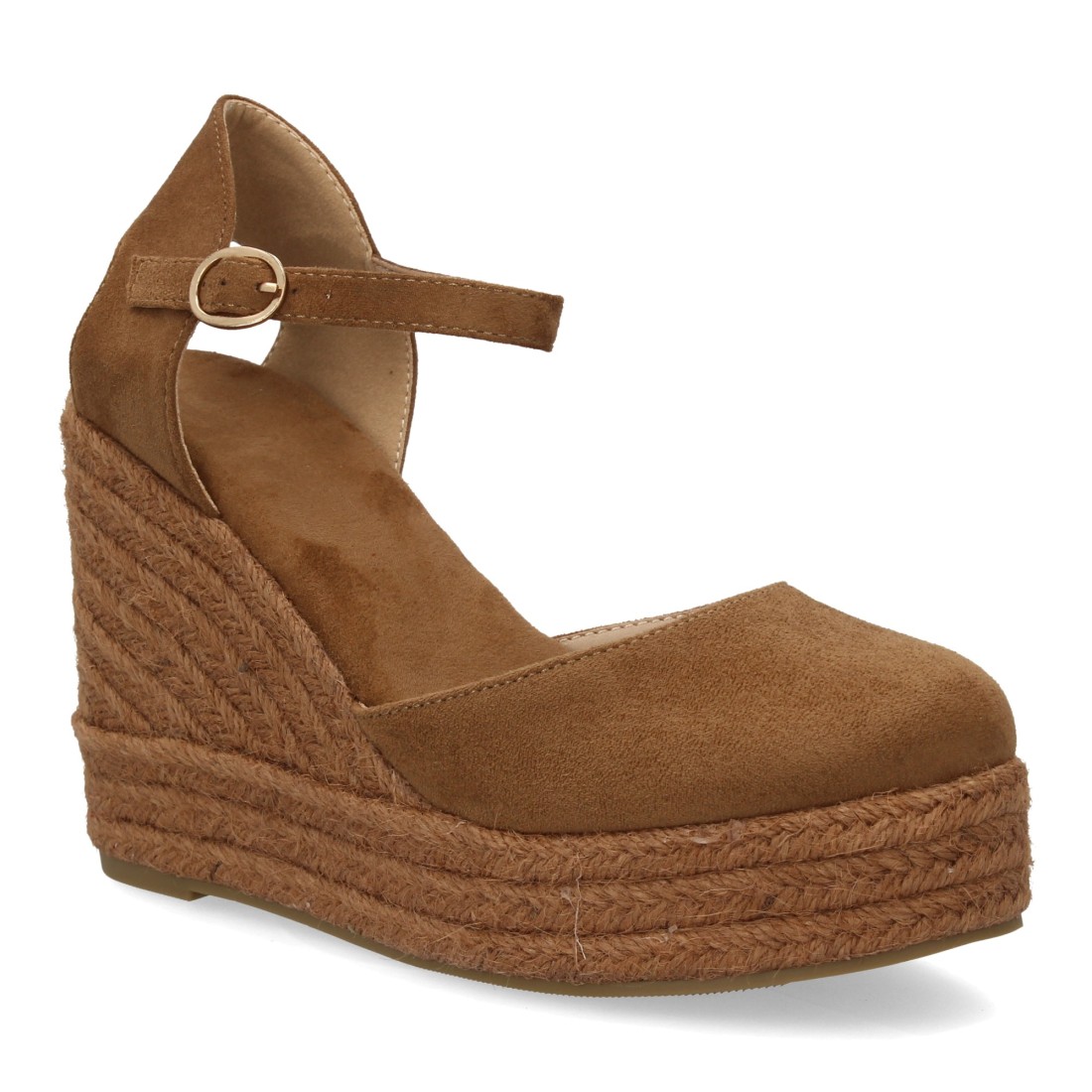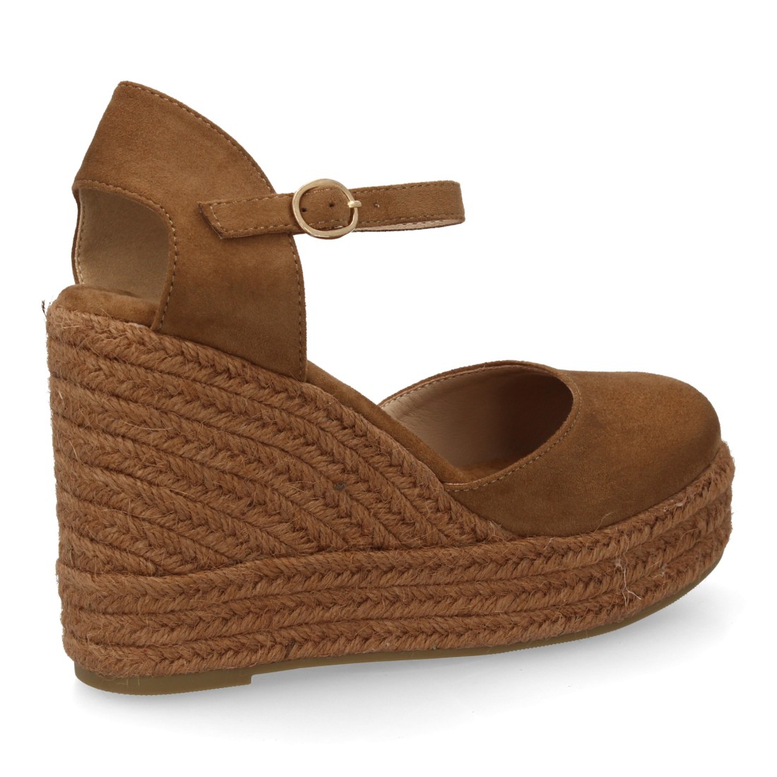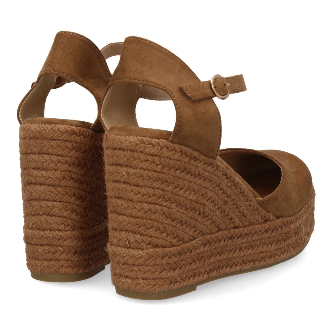 Alpargata de mujer con cuña y plataforma, punta y talon cerrados, cierre de hebilla en el tobillo, monocolor, cuña de yute trenzado ligera y cómoda para la Temporada verano.