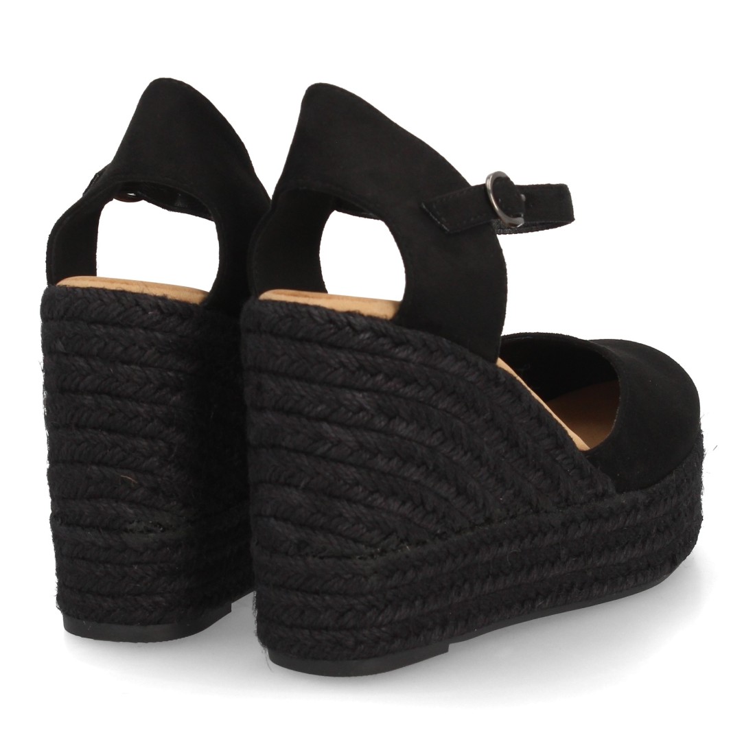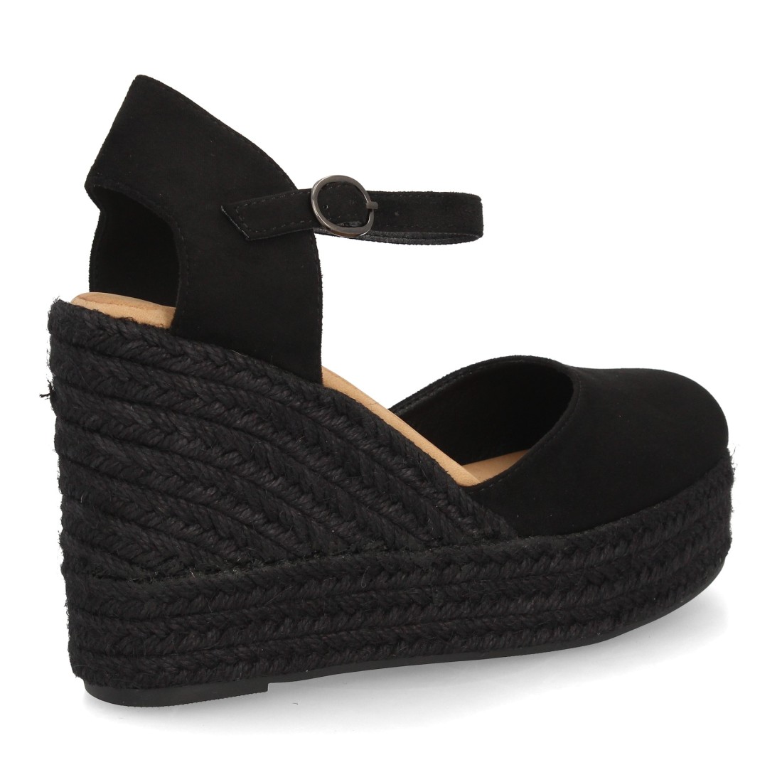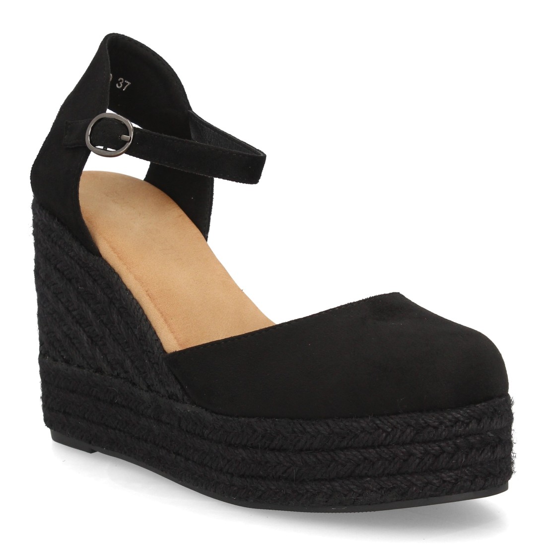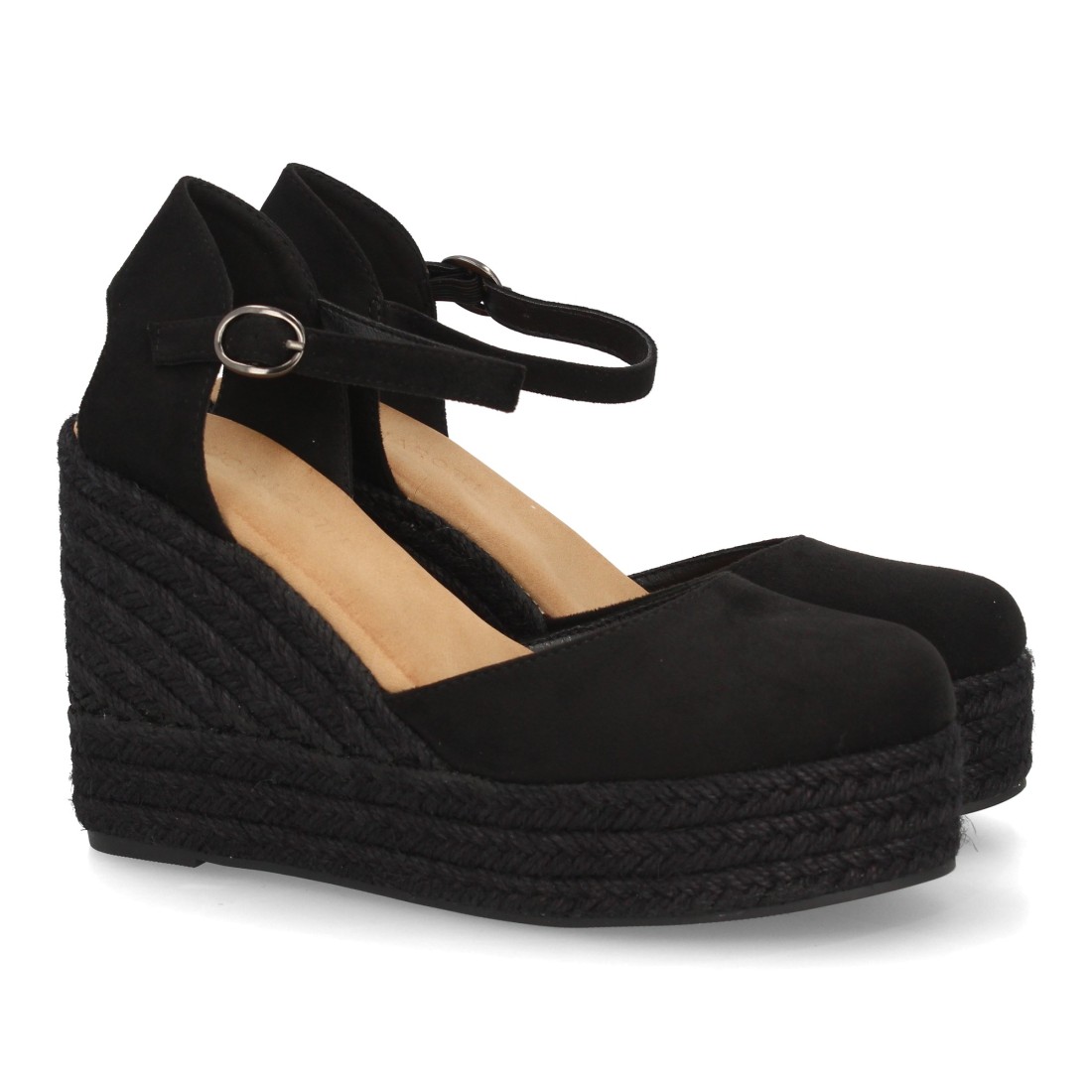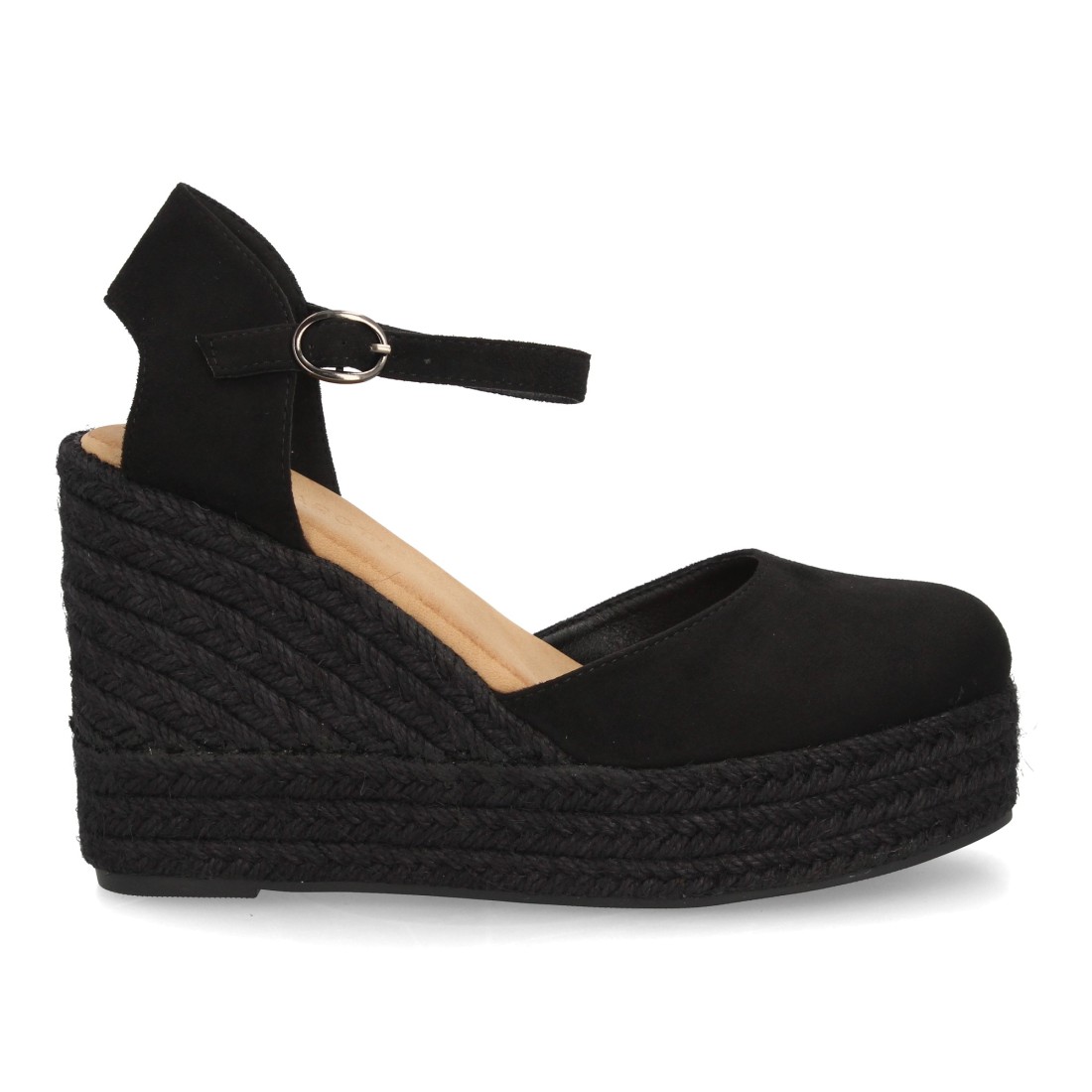 Alpargata de mujer con cuña y plataforma, punta y talon cerrados, cierre de hebilla en el tobillo, monocolor, cuña de yute trenzado ligera y cómoda para la Temporada verano.