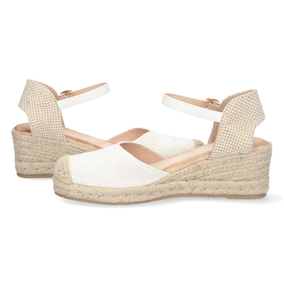 Sandalia de Cuña para Mujer, Forrada de Yute, con Pala Cerrada, Punta de Rafia, y Cierre de Hebilla, Primavera Verano 2023