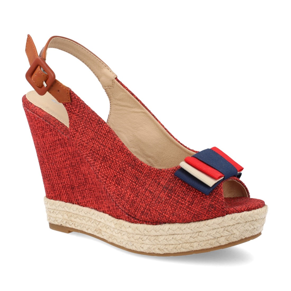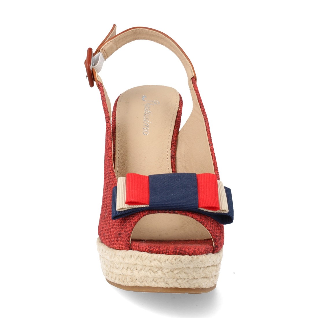 Sandalia Mujer Plataforma Descubierta con Lazo Combinado Cuña Alta Forrada Cierre con Correa Estilo Slingback Primavera Verano 2019