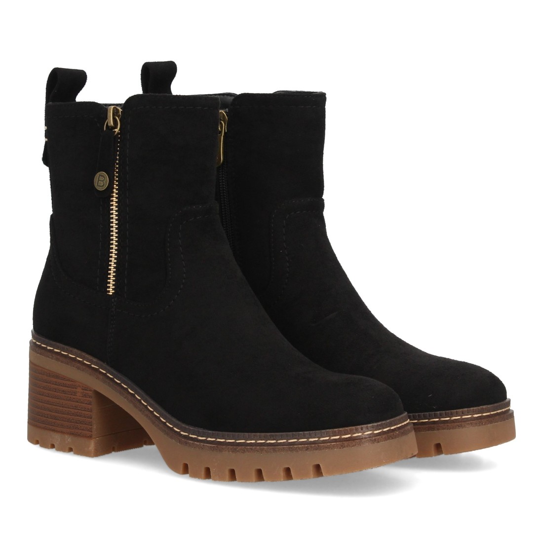 Botines para mujer con tacón y cremallera color negro