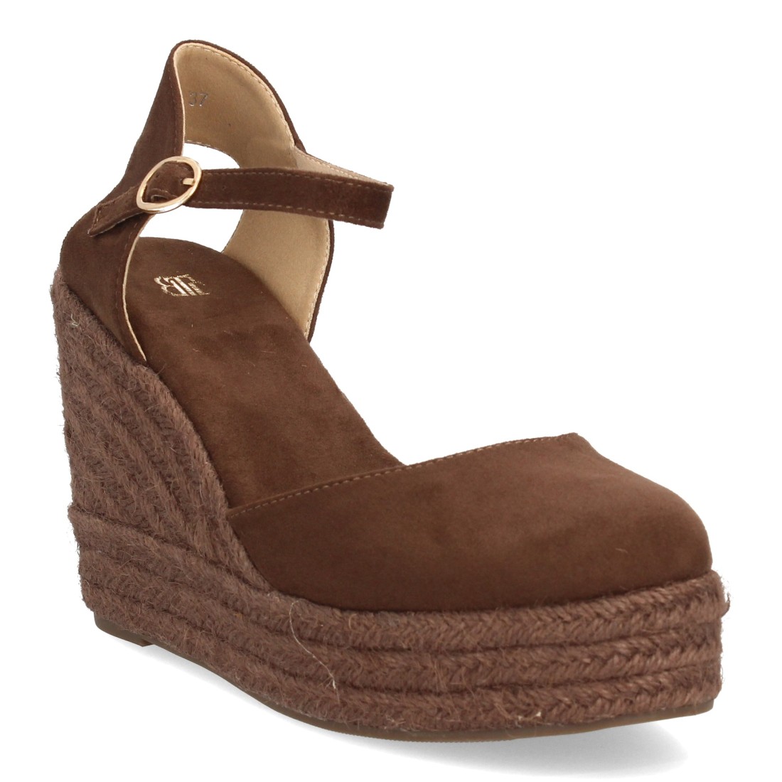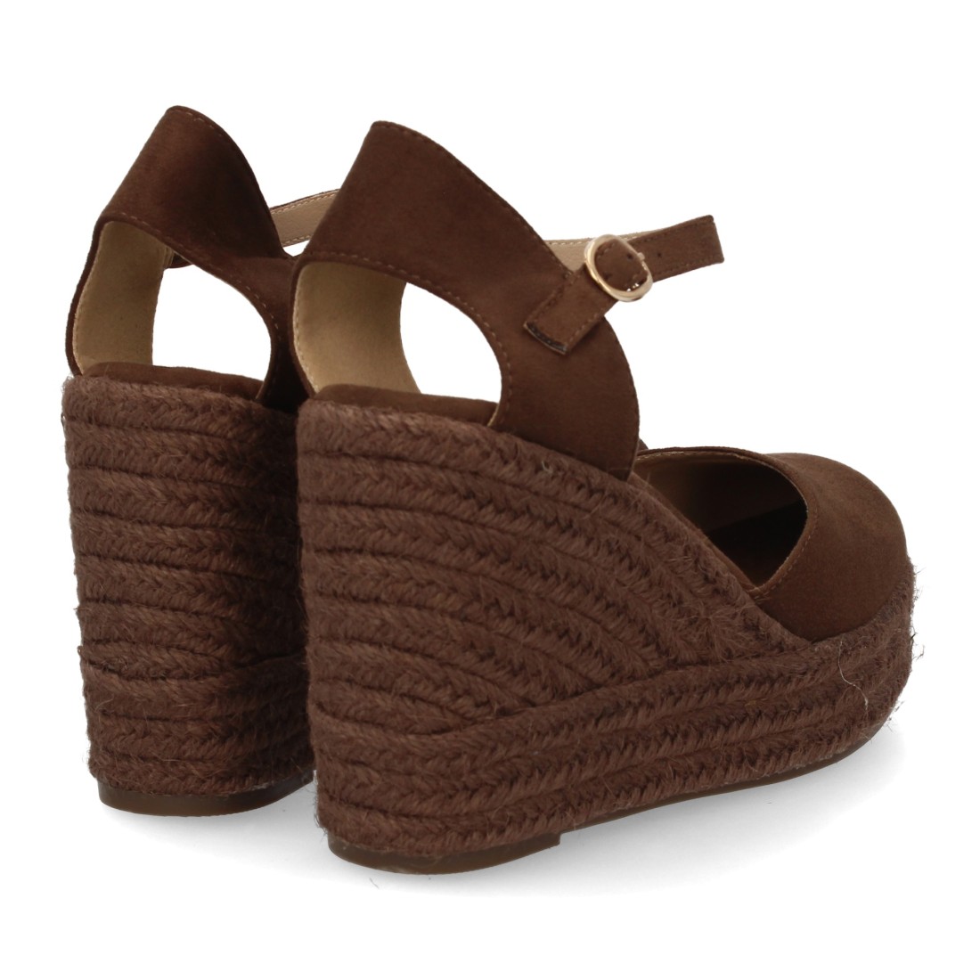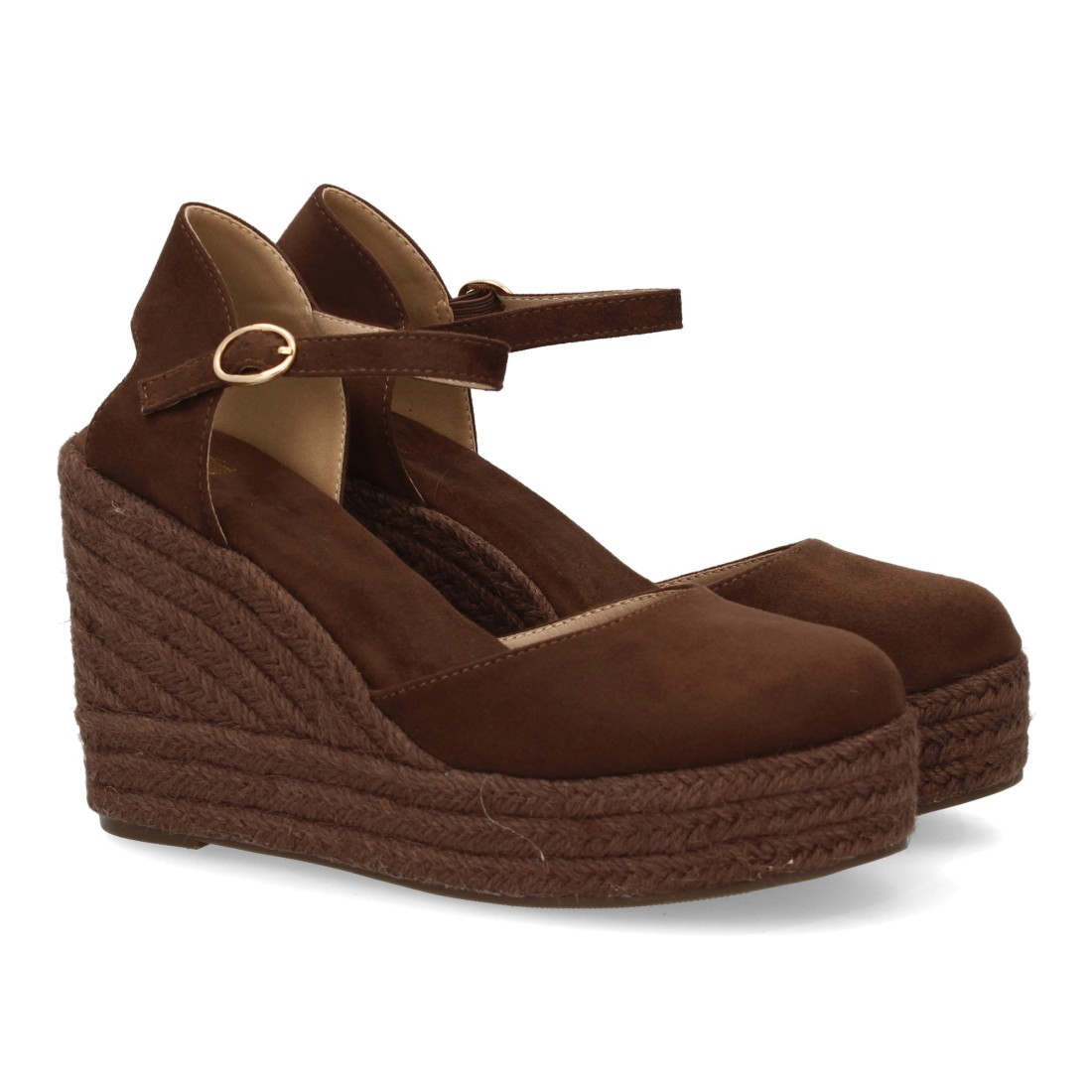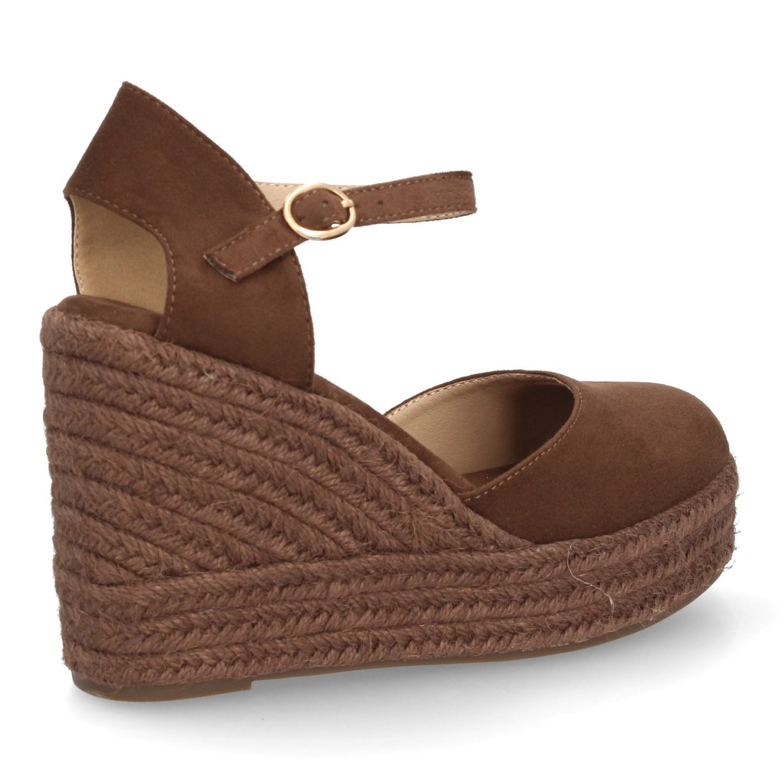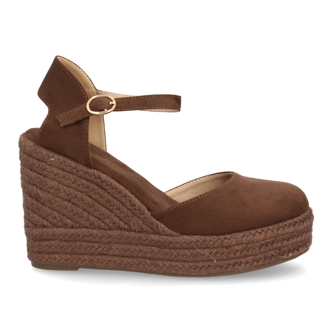 Alpargata de mujer con cuña y plataforma, punta y talon cerrados, cierre de hebilla en el tobillo, monocolor, cuña de yute trenzado ligera y cómoda para la Temporada verano.