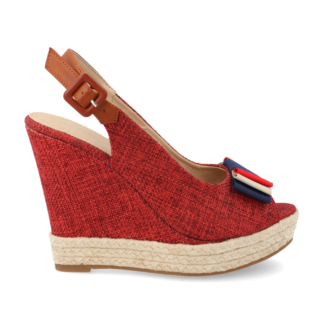 Sandalia Mujer Plataforma Descubierta con Lazo Combinado Cuña Alta Forrada Cierre con Correa Estilo Slingback Primavera Verano 2019