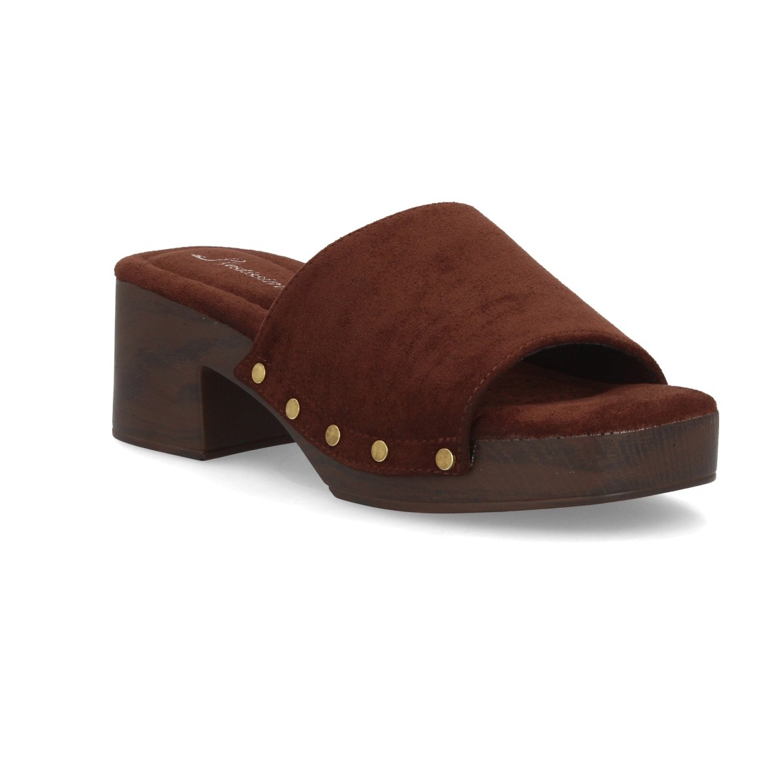Zueco mujer tacón con tachuelas color marrón