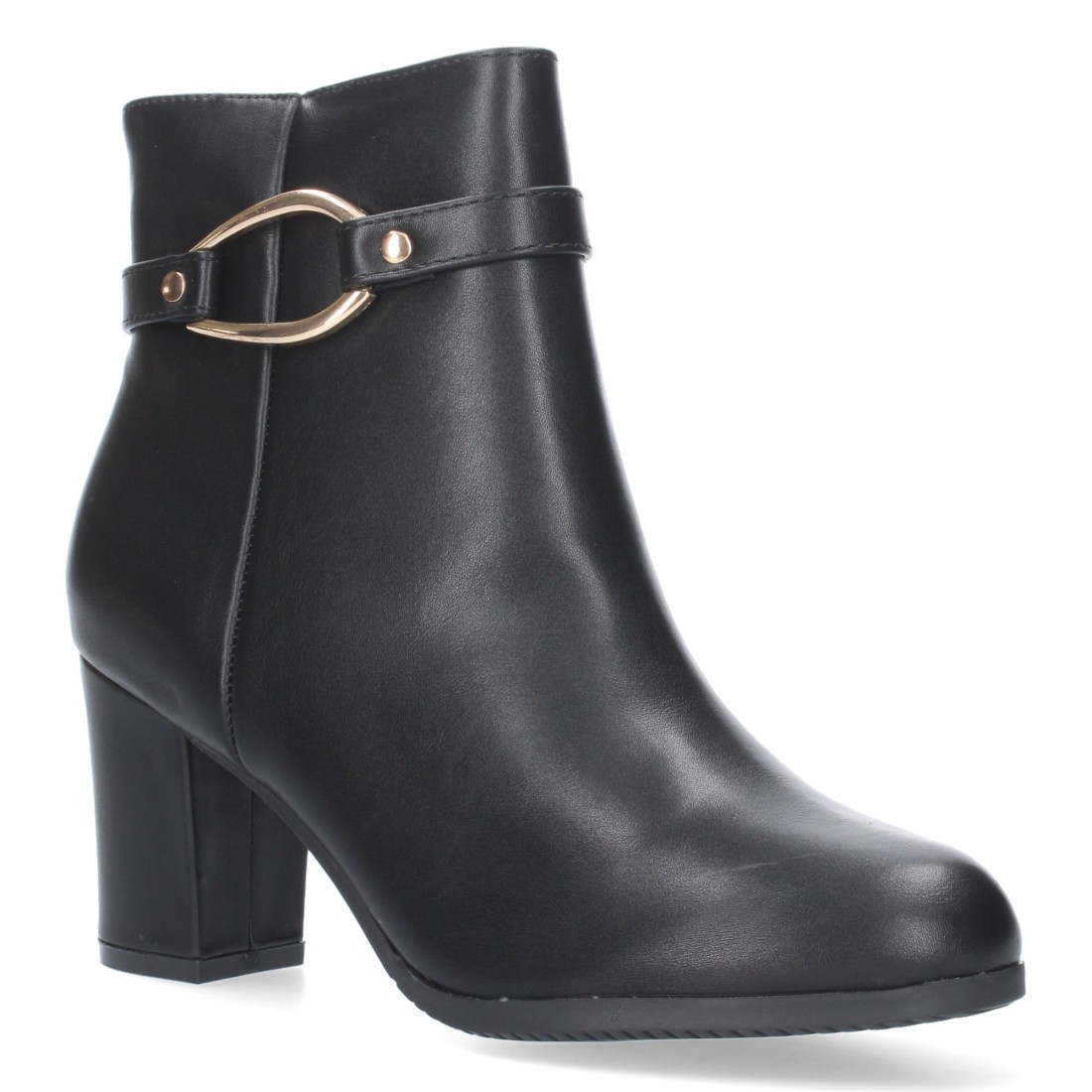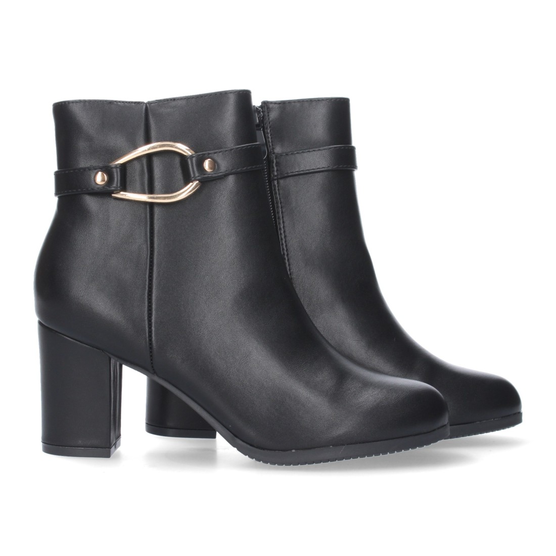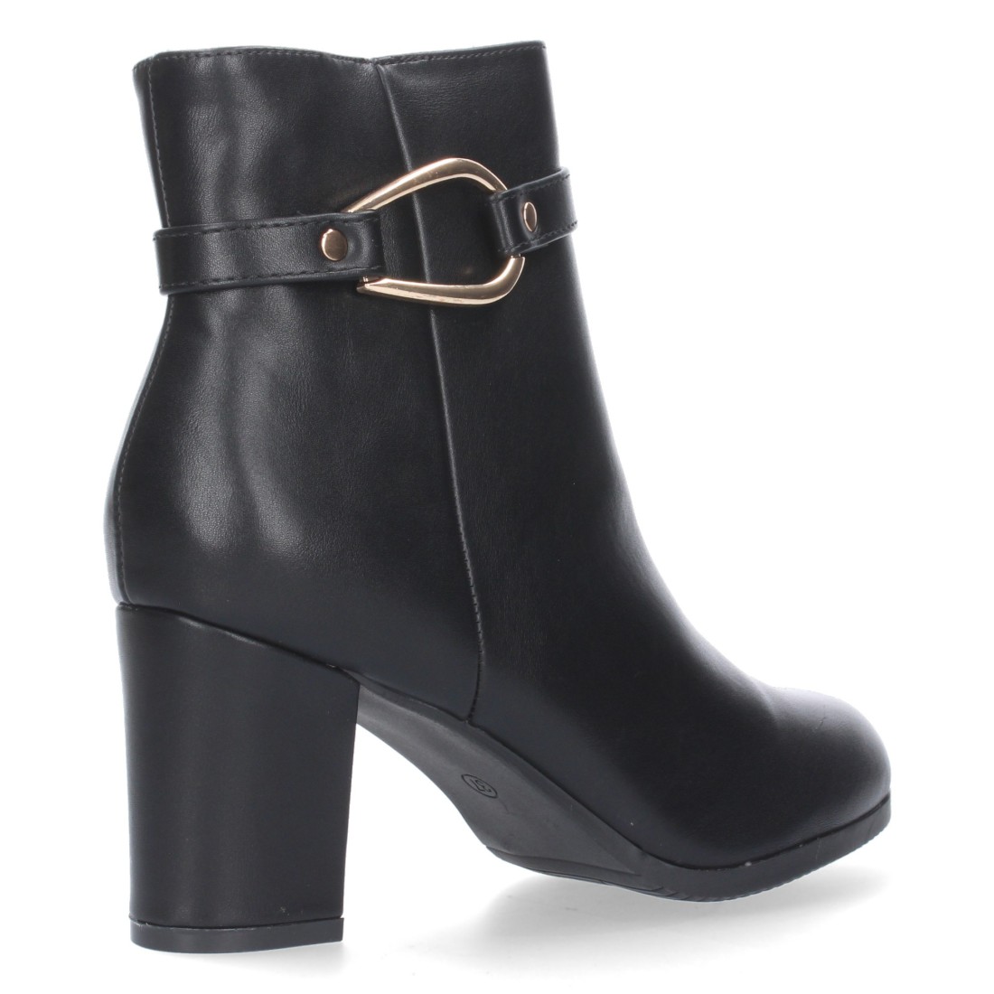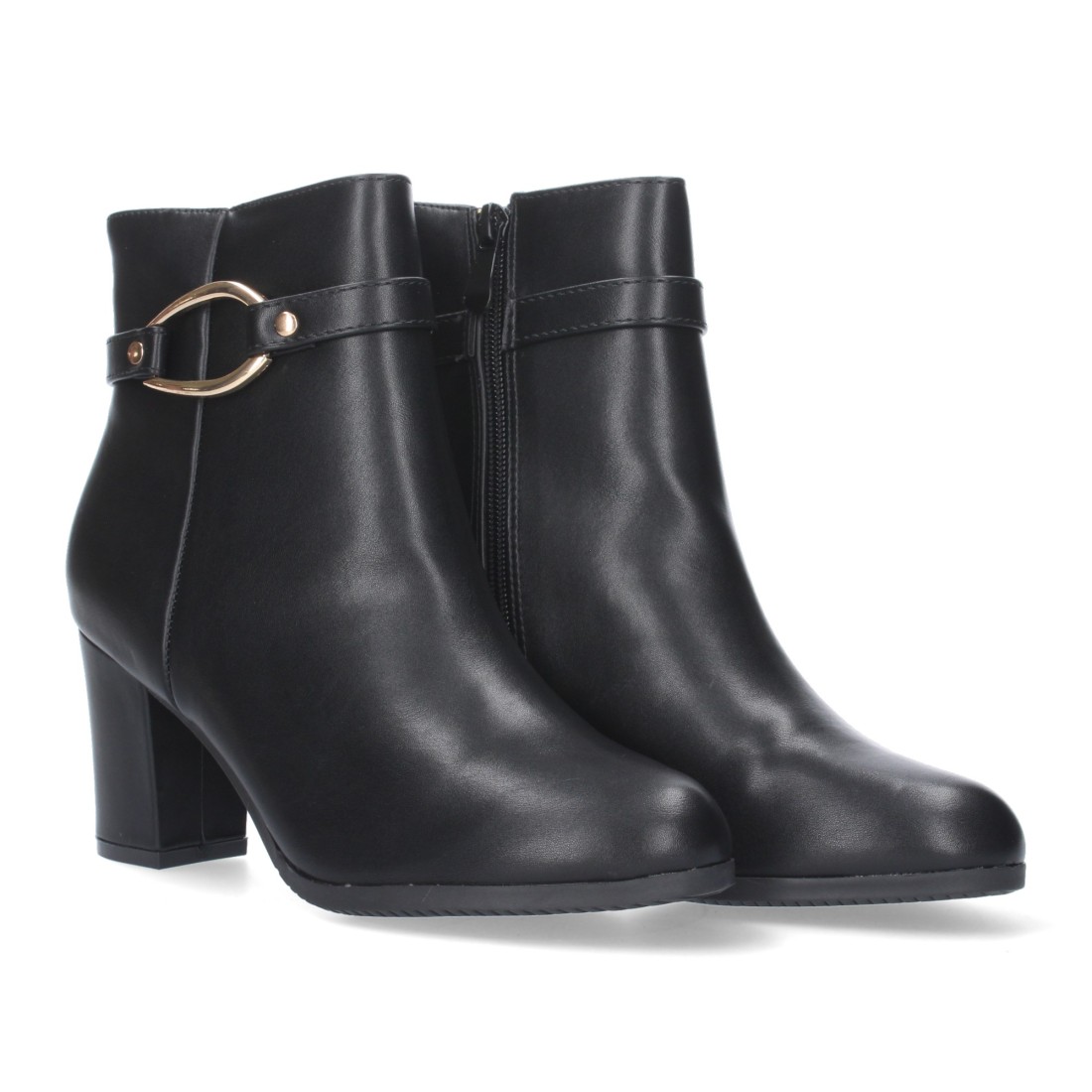 Botin de Tacon Ancho para Mujer, punta redonda, adorno de hebilla y Cierre de Cremallera