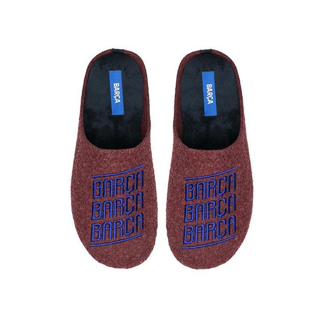 Zapatillas de casa oficiales del FC Barcelona con bordado Barça. De fieltro, con suela de caucho antideslizante y plantilla antibacteriana. Lavable en lavadora, hechas en España.