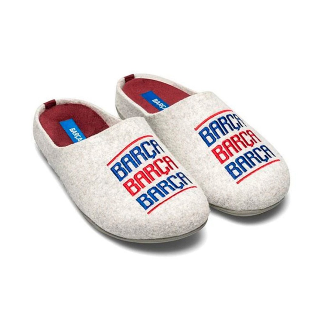Zapatillas de casa oficiales del FC Barcelona con bordado Barça. De fieltro, con suela de caucho antideslizante y plantilla antibacteriana. Lavable en lavadora, hechas en España.