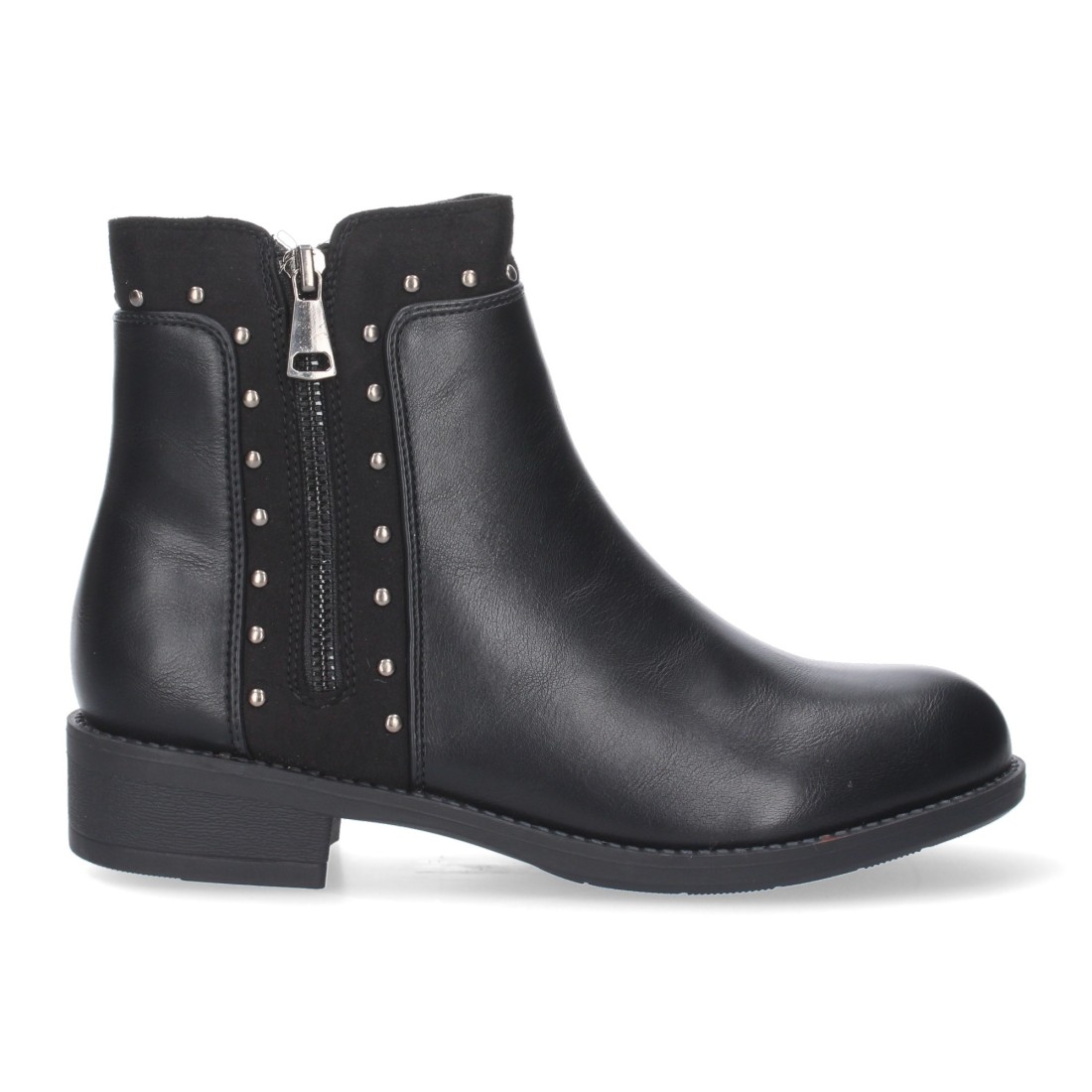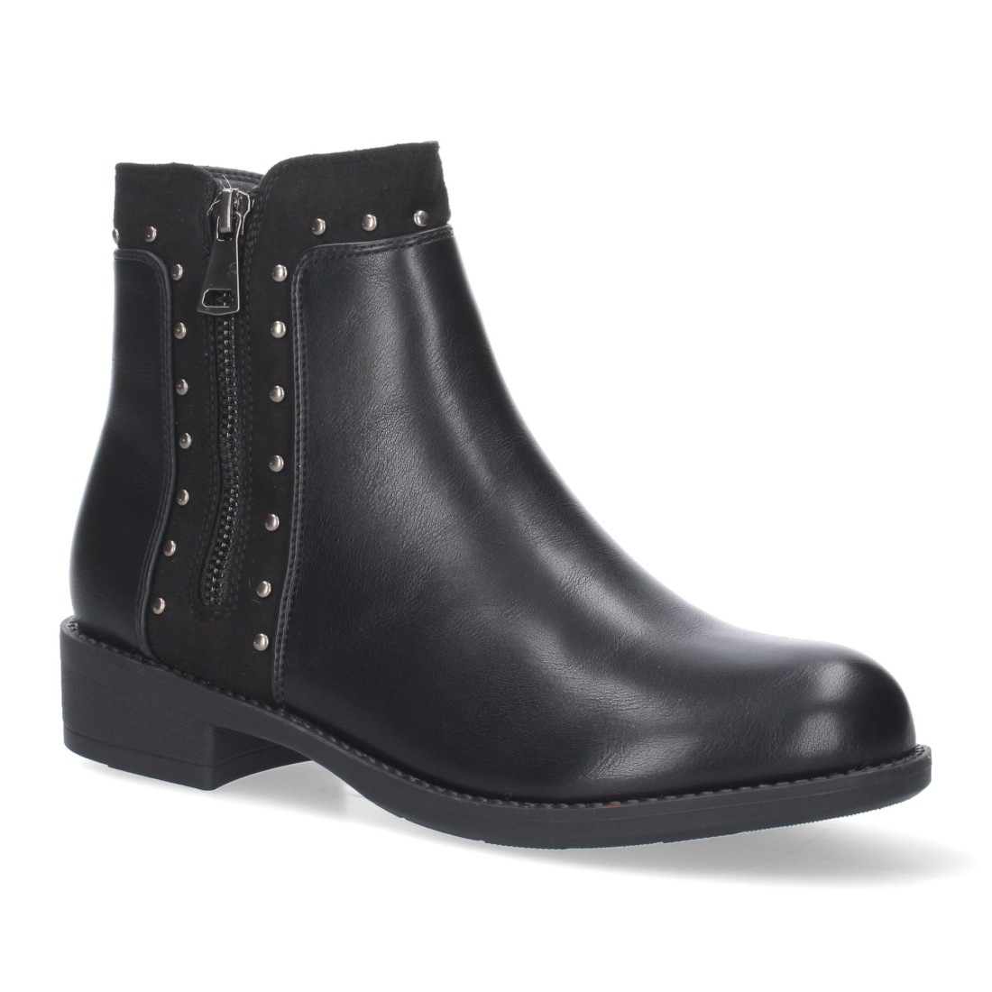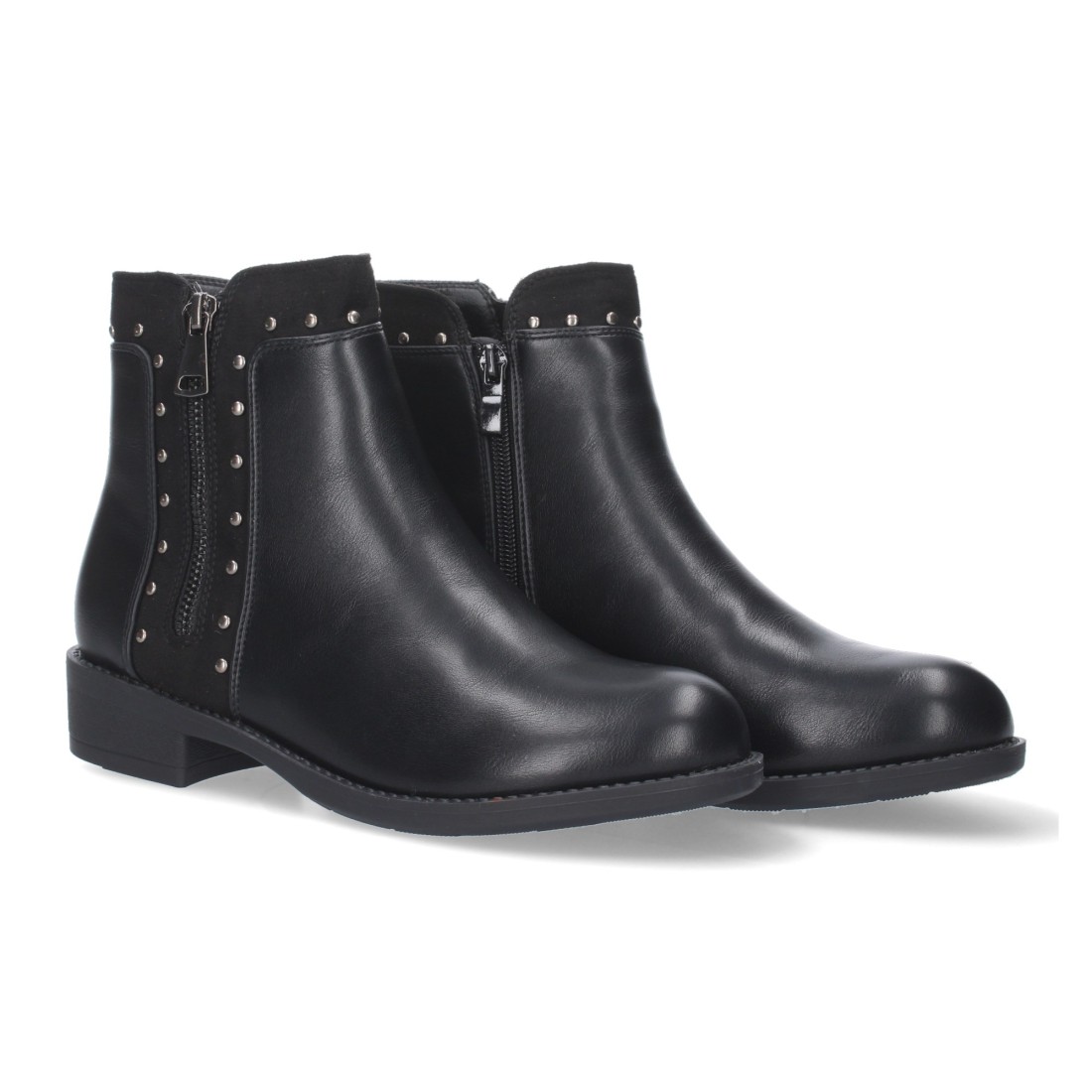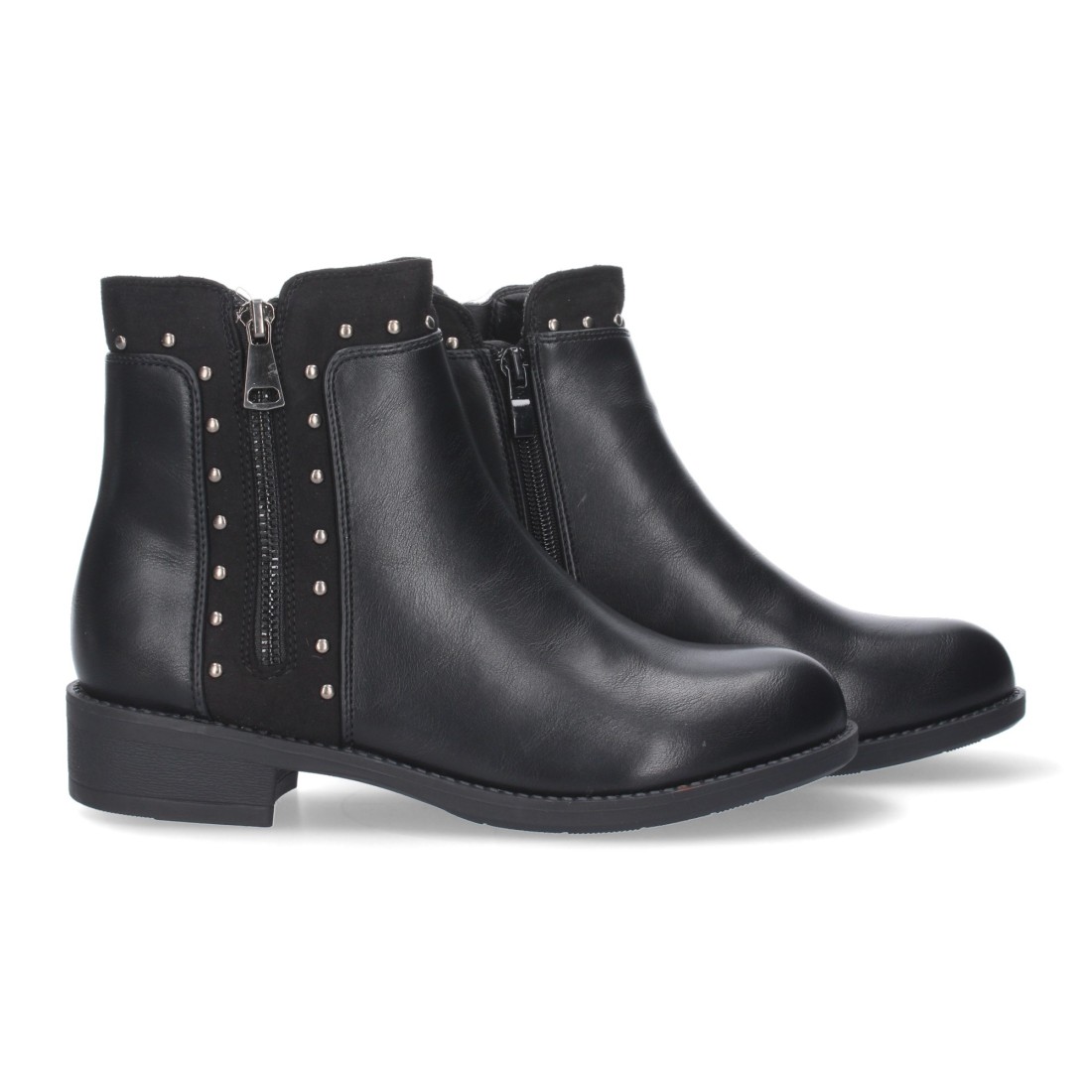 Botín para mujer, adorno de tachuelas en la caña. Cierre de cremallera.