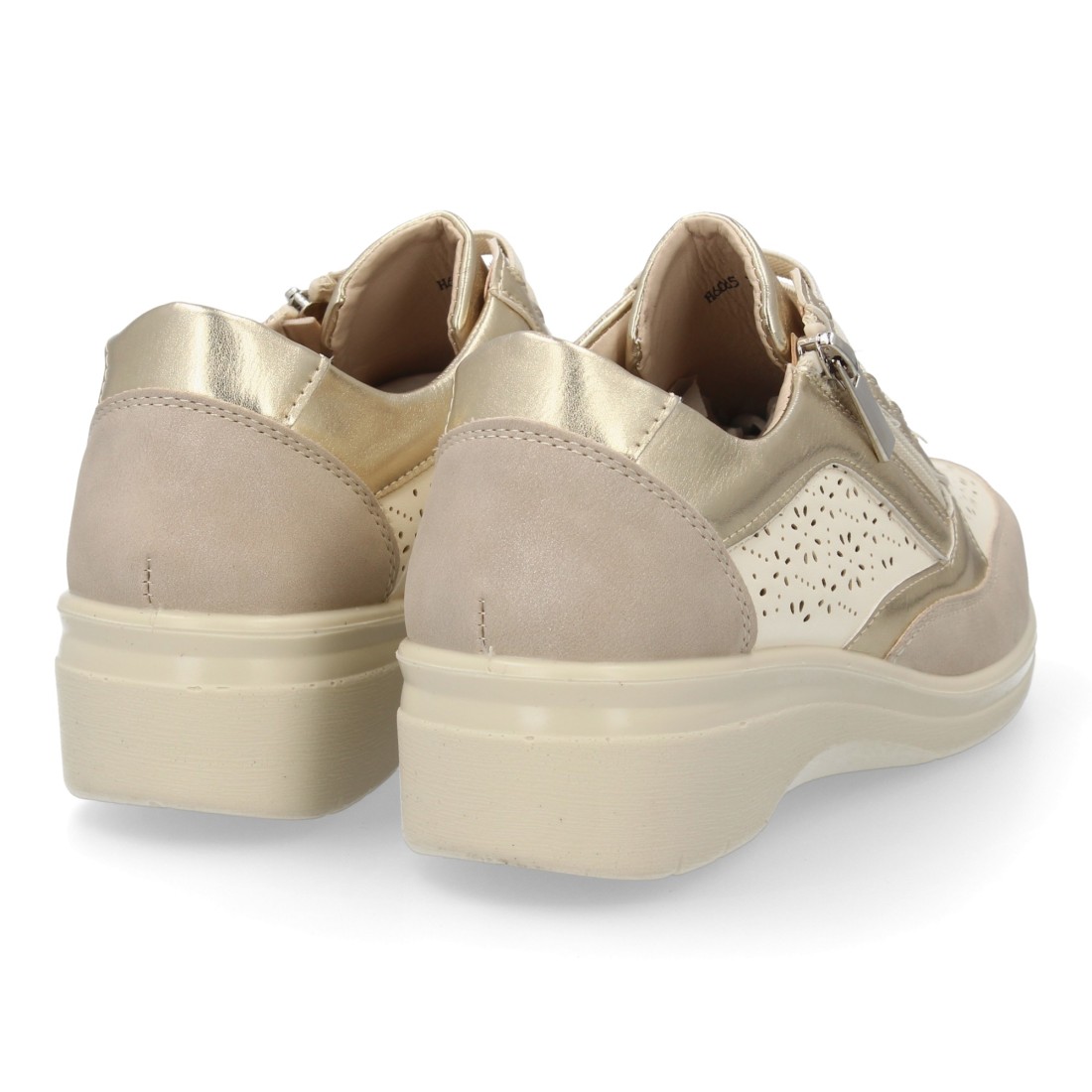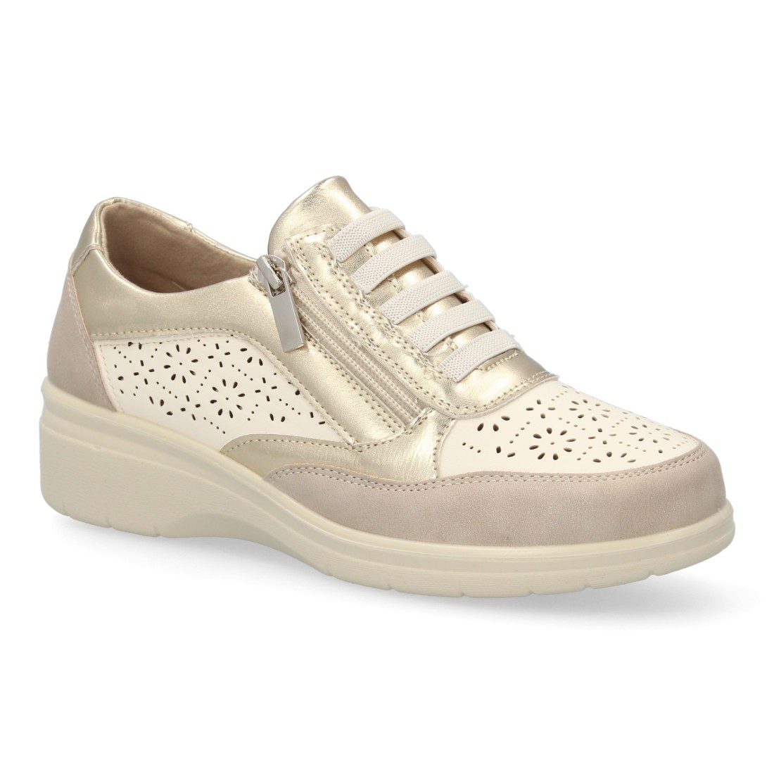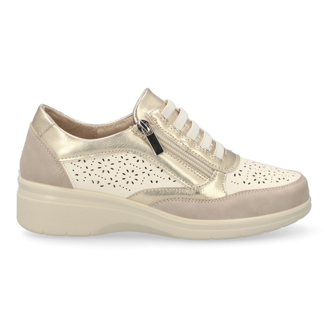 Zapatilla casual de mujer, muy comodas con cordones elásticos y cierre de cremallera seguro. Cuña ligera, con calados. Ideales para Primavera-Verano.