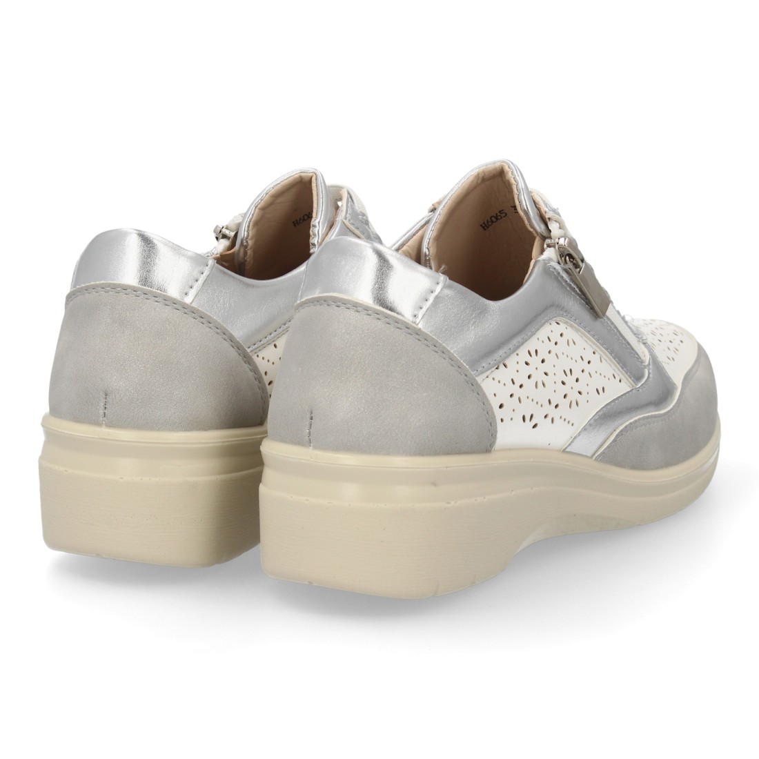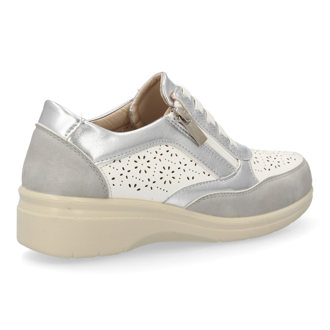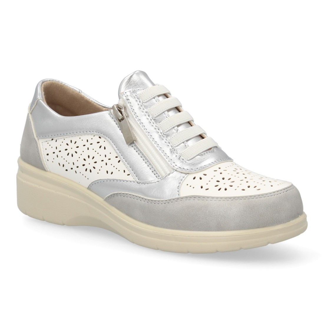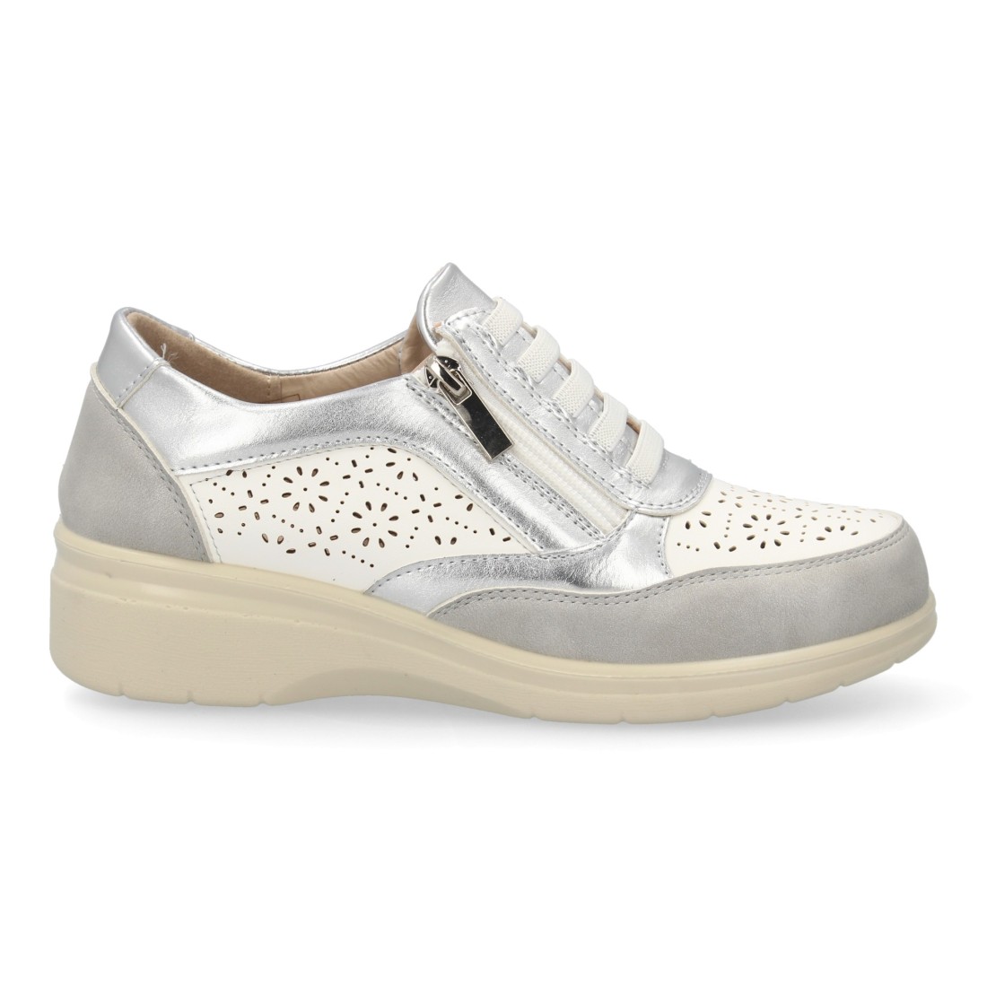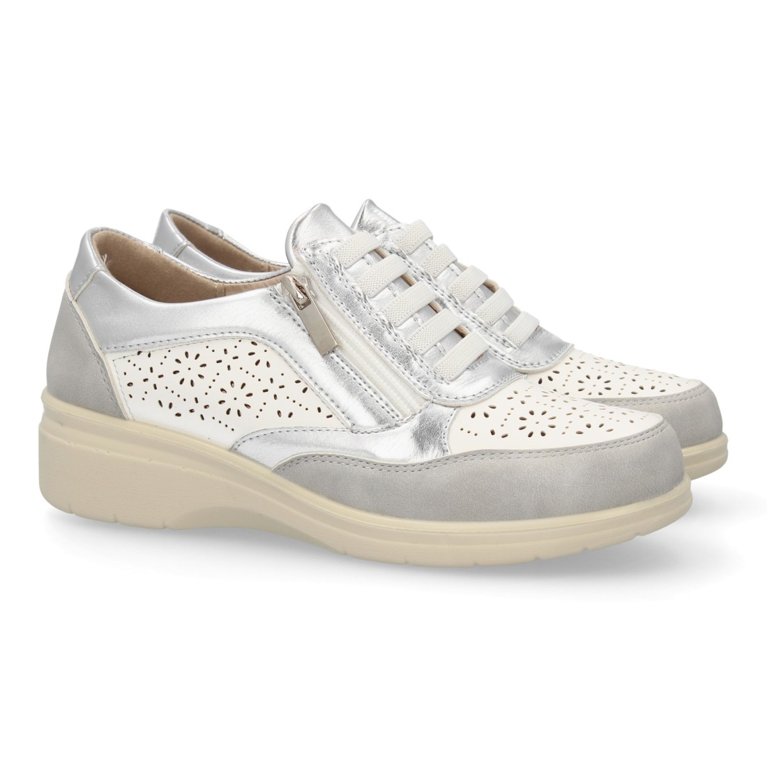 Zapatillas mujer cuña con cremallera y calados color plata