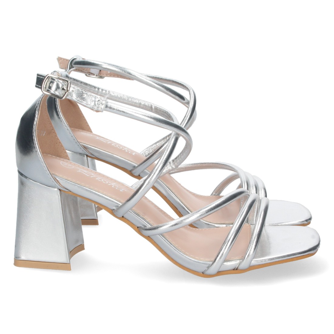 Sandalia de Tacon para Mujer, Comodo, con Tiras Finas Cruzadas, Talon Cerrado, y Cierre de Hebilla