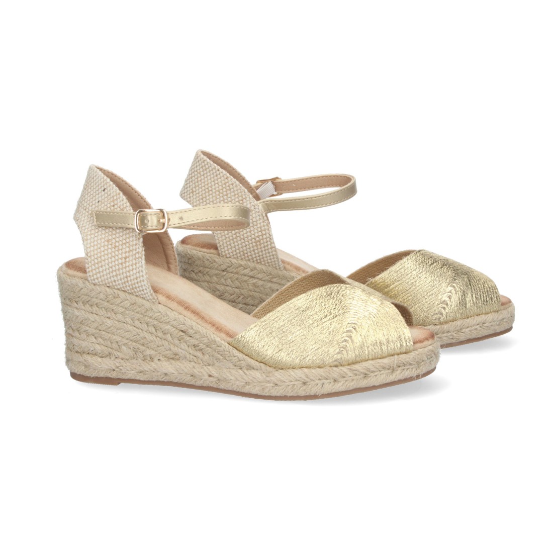 Sandalia de Cuña Elegantes y Comodas para Mujer, con Hebilla Ajustable, Cuña de Yute, Diseño Metálico.