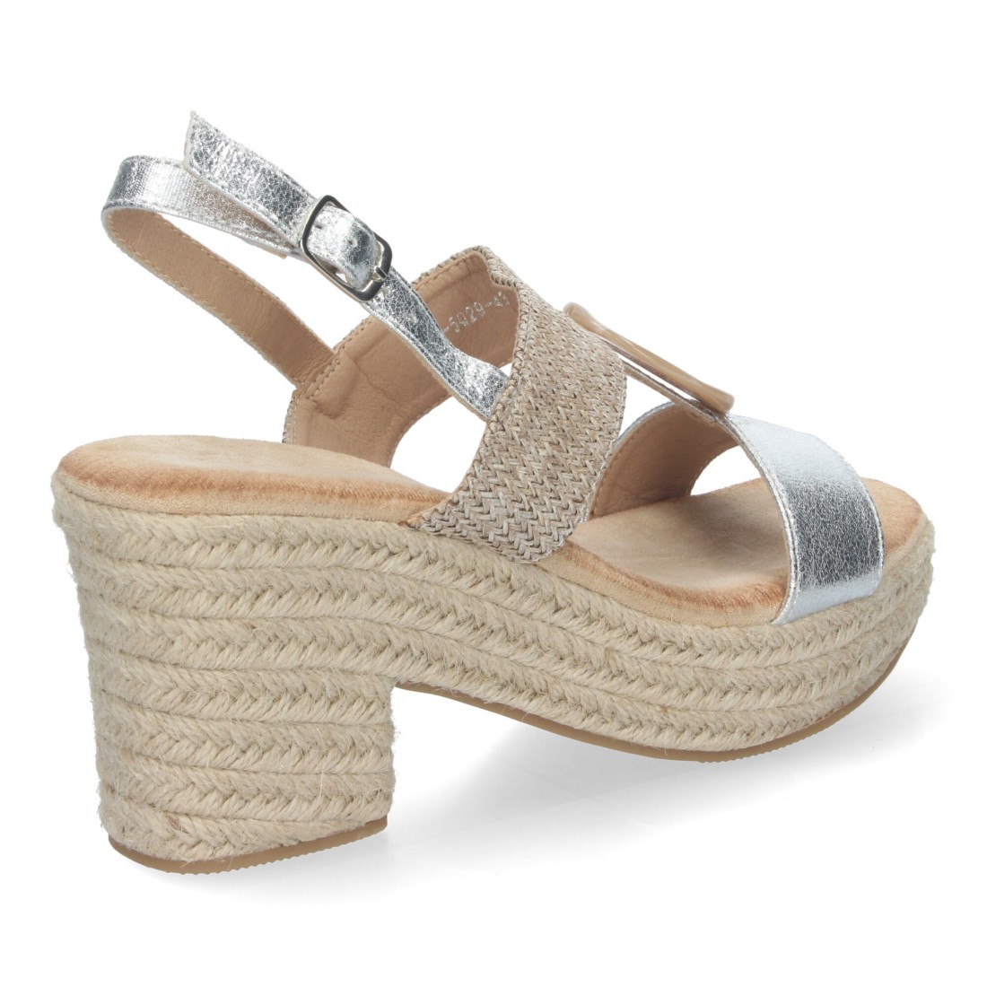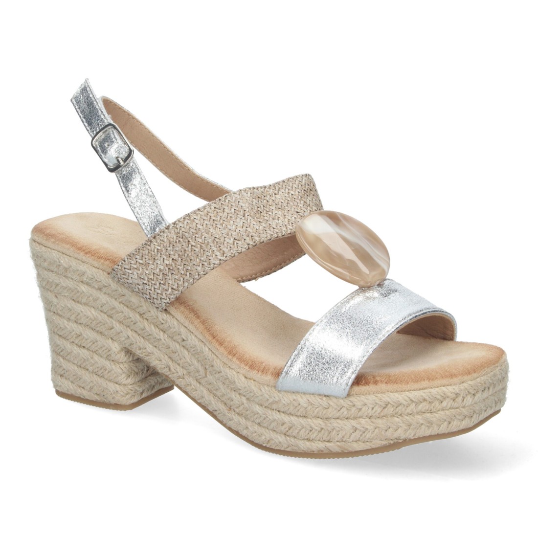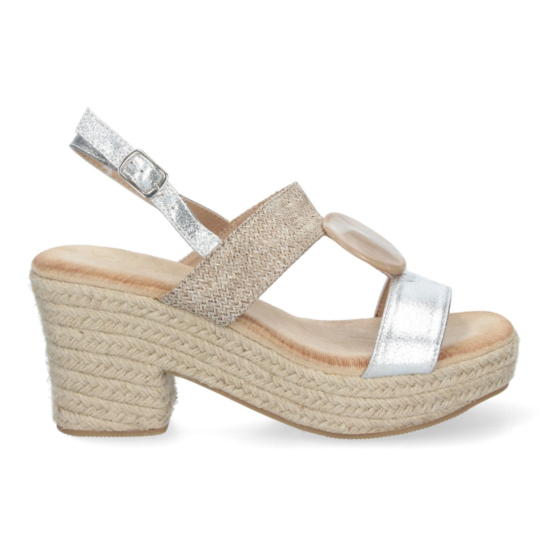 Sandalia de tacón para Mujer, Comodas, Detalle de Pedrería y Hebilla Ajustable, Piso de Yute.