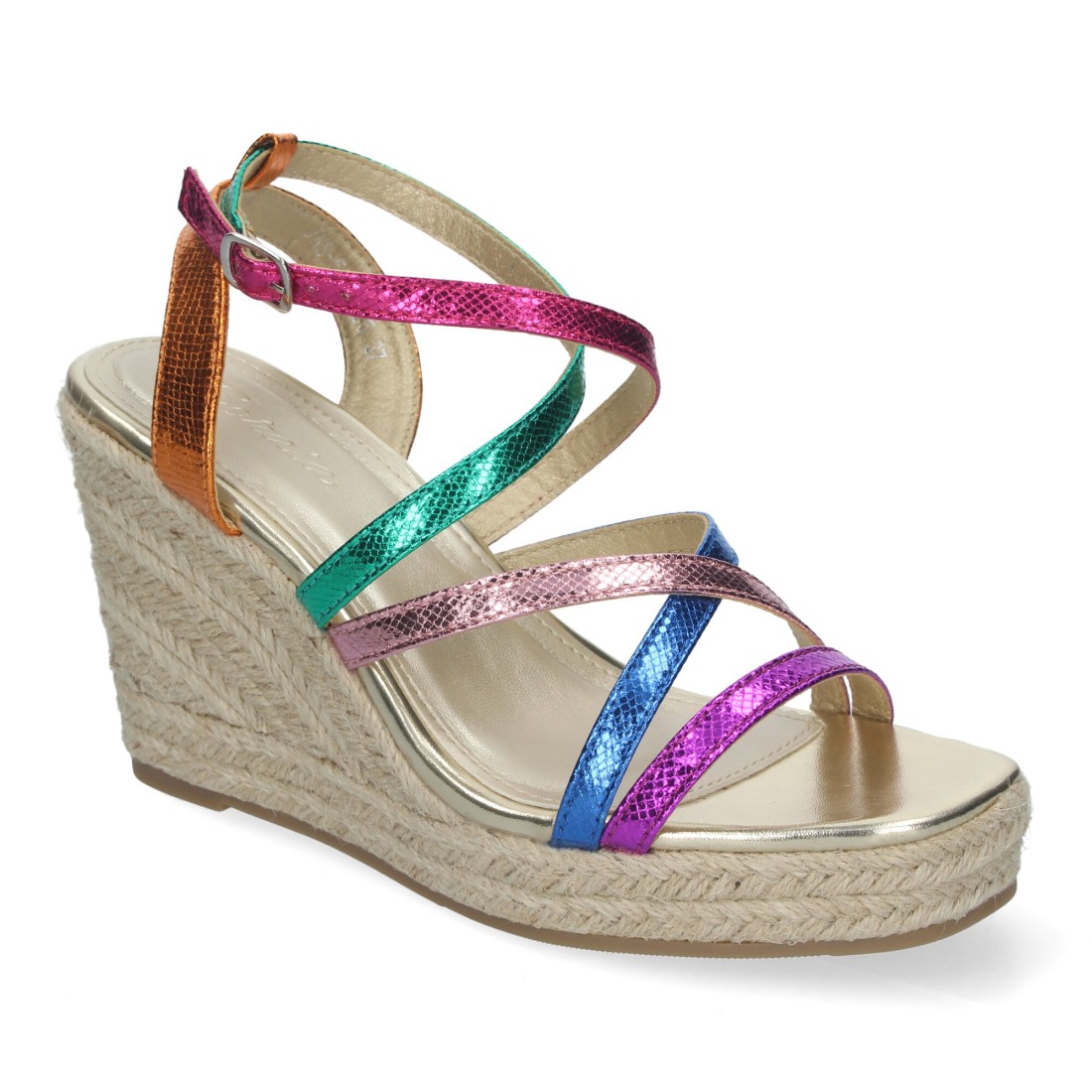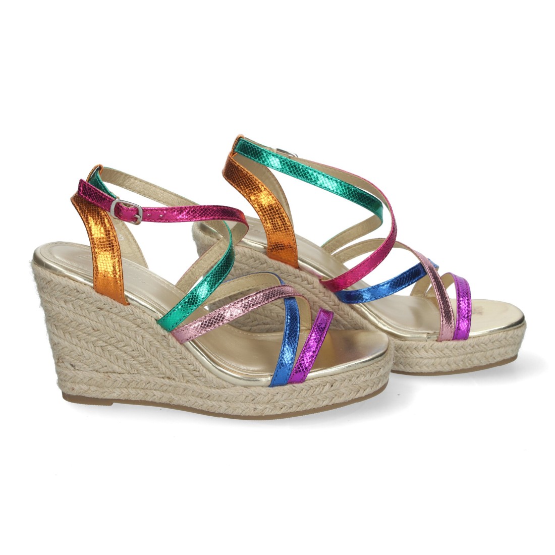 Sandalias de Cuña para Mujer con Tiras Cruzadas, Elegantes y Confortables con Cierre de Hebilla Ajustable.