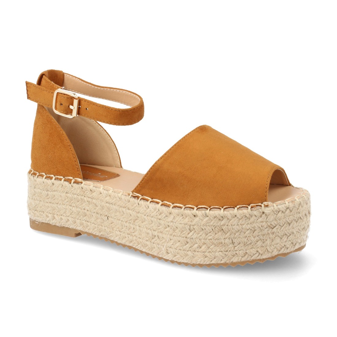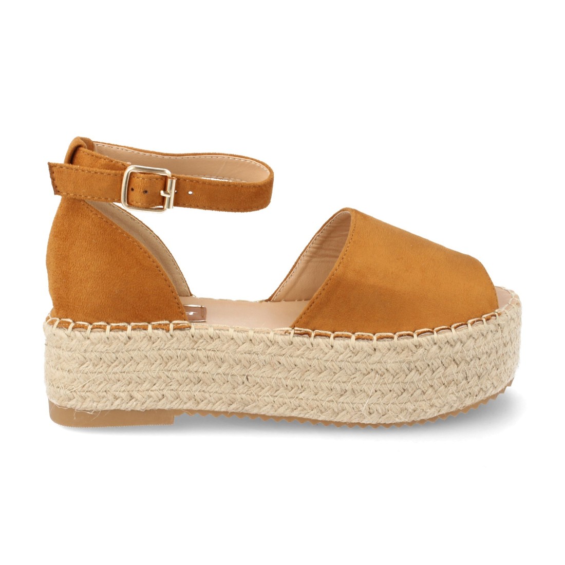 Sandalia de mujer con plataforma de 5 cm yute y correa ajustable al tobillo con puntera abierta primavera verano 2019