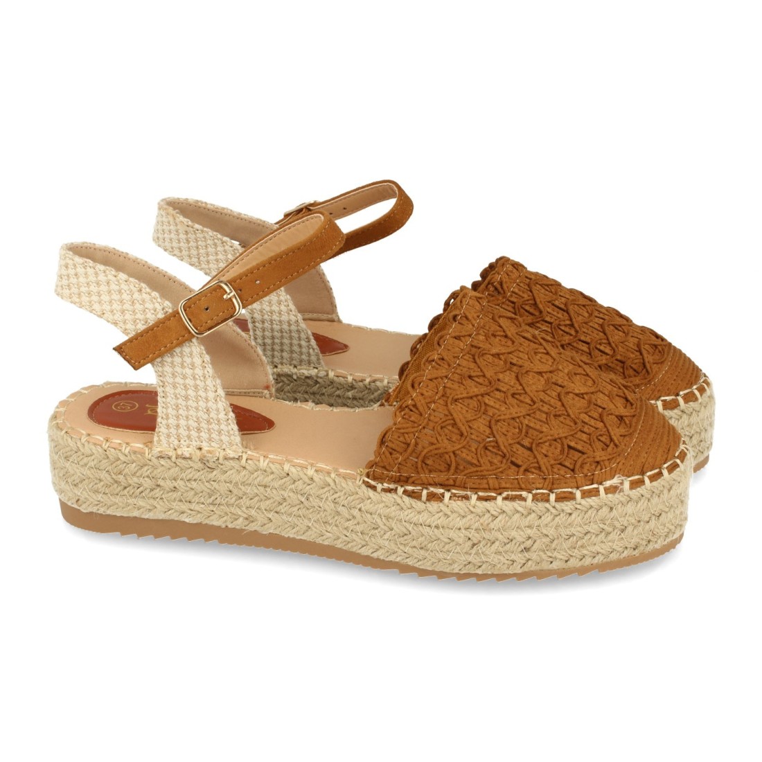 Sandalia de Plataforma para Mujer, Forrada de Yute, Pala Cerrada de Rafia, y Cierre de Hebilla, Primavera Verano 2021