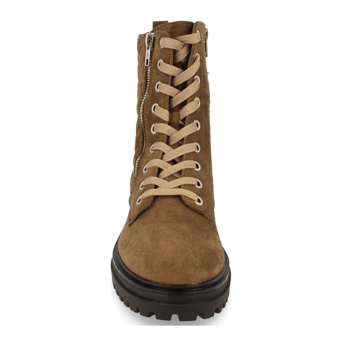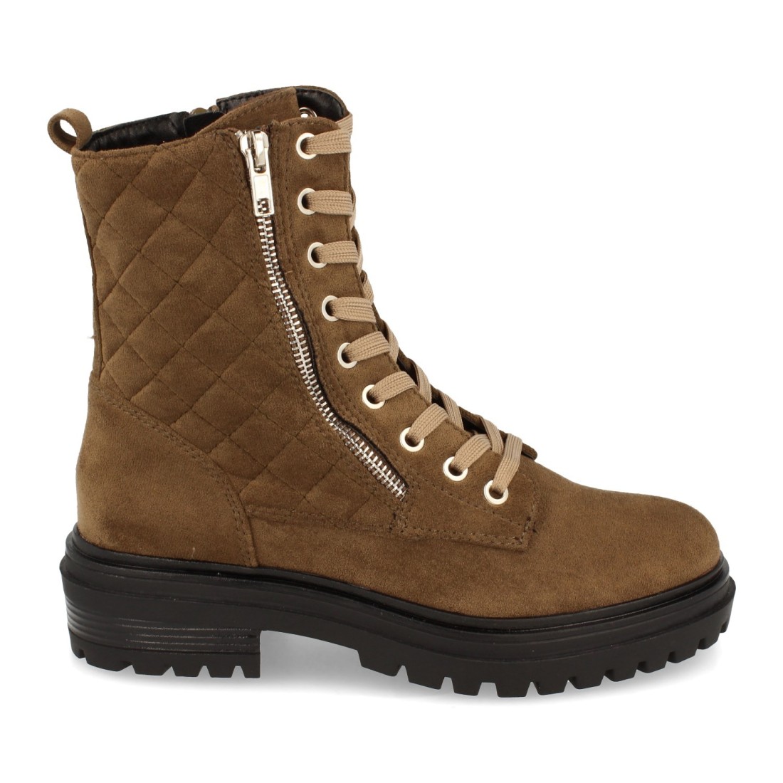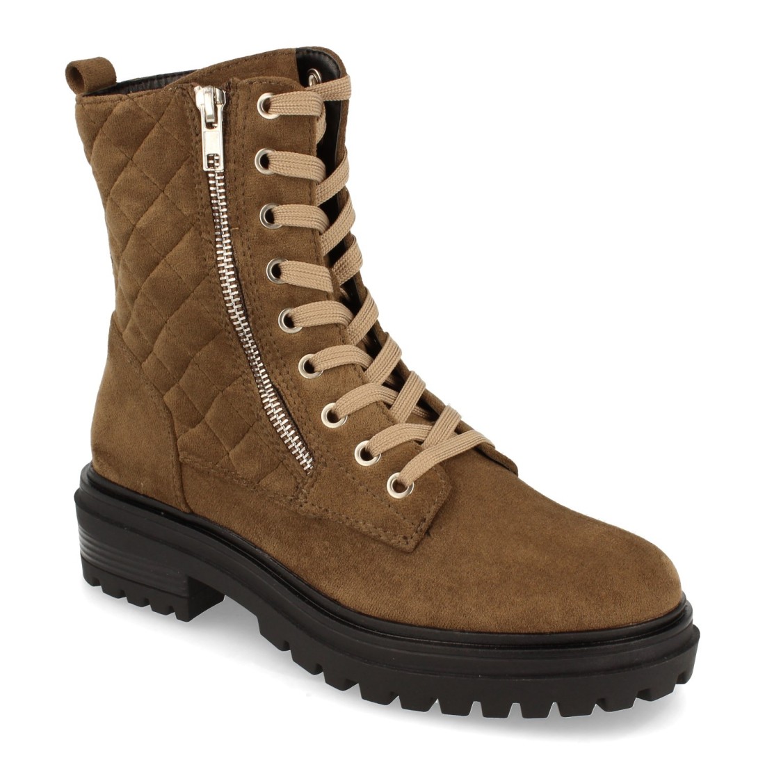 Botín Plano para Mujer, Comodos, con Estampado Liso, Adornado con Cremallera, y Cierre de Cordones, Otoño Invierno 2021