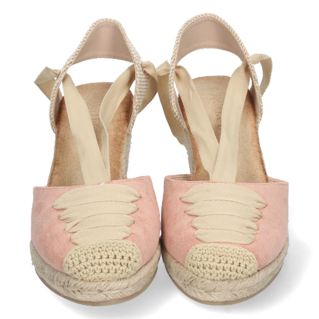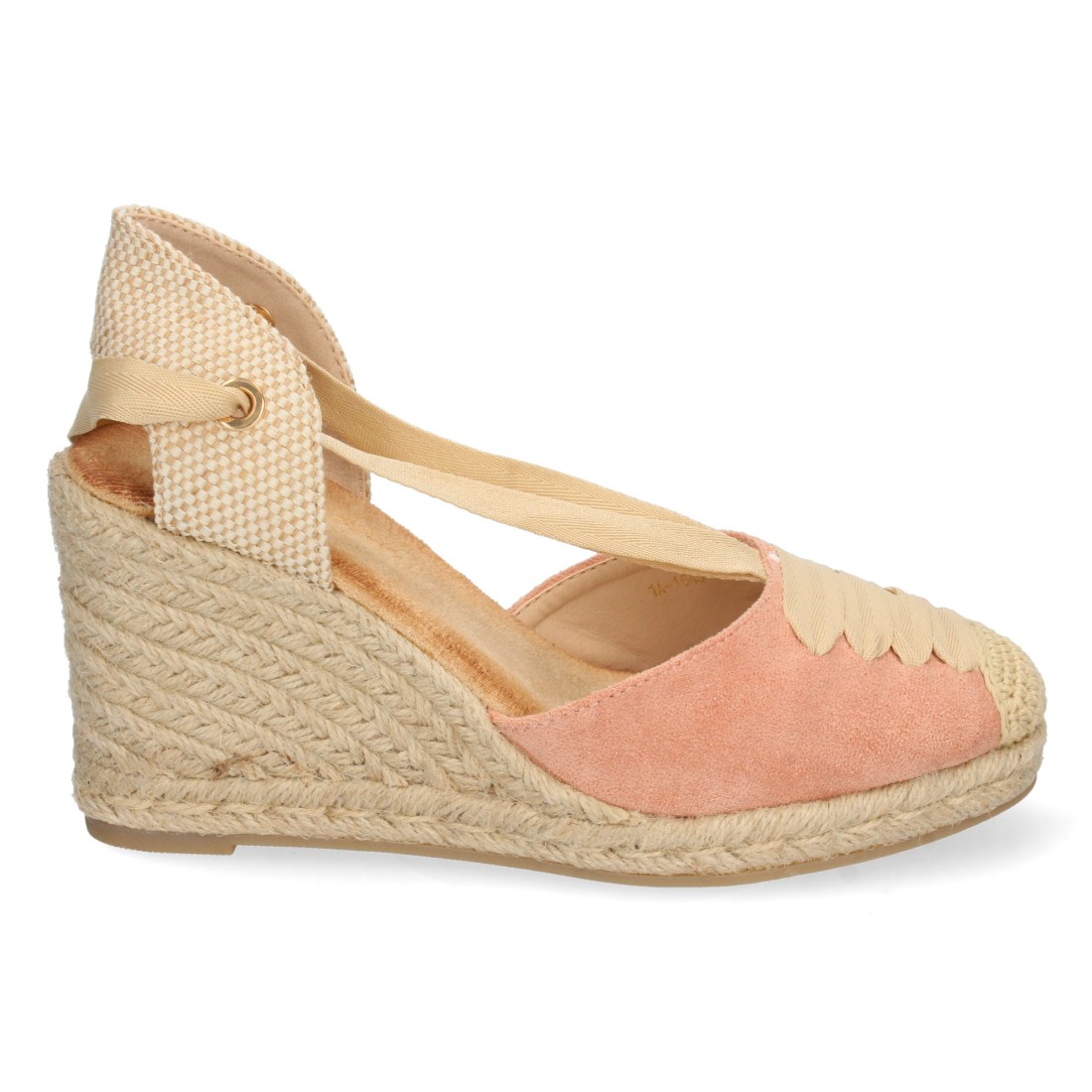 Sandalia de Cuña para Mujer, Forrado de Yute, con Pala Cerrada, y Cierre de Cordones, Primavera Verano 2022