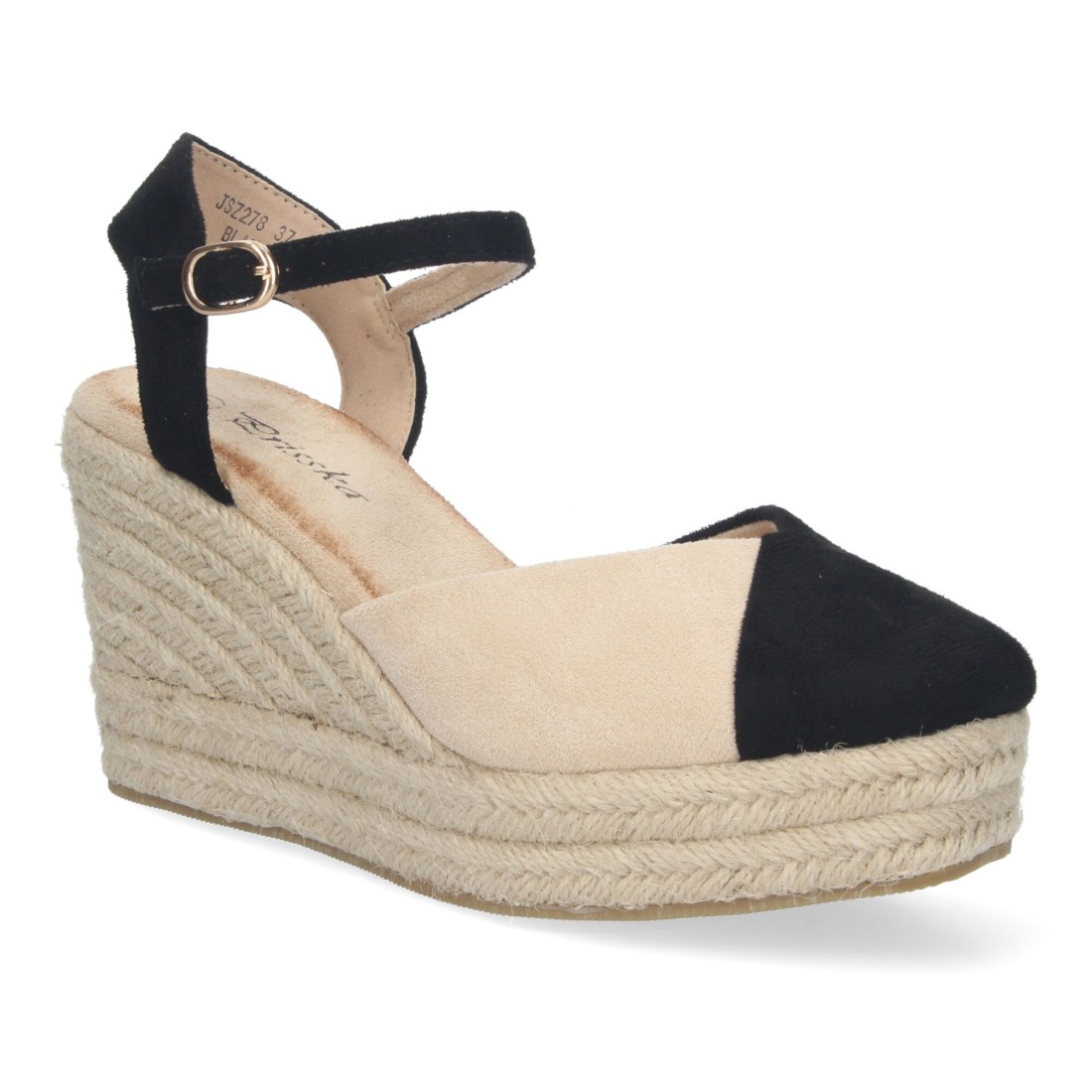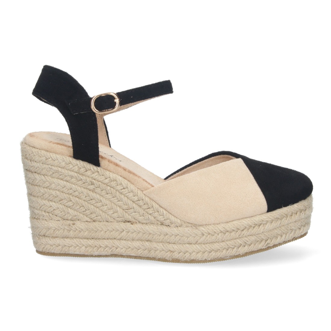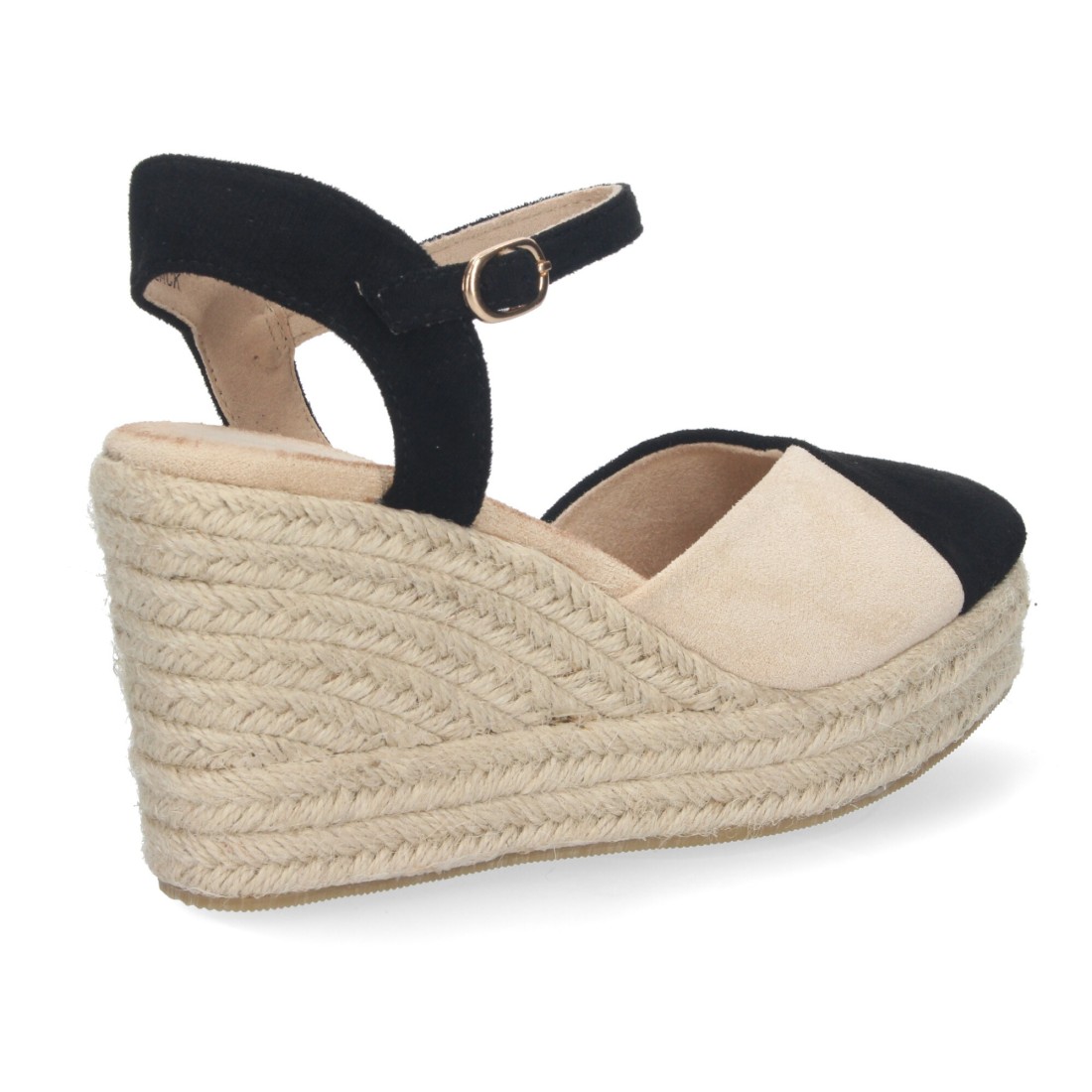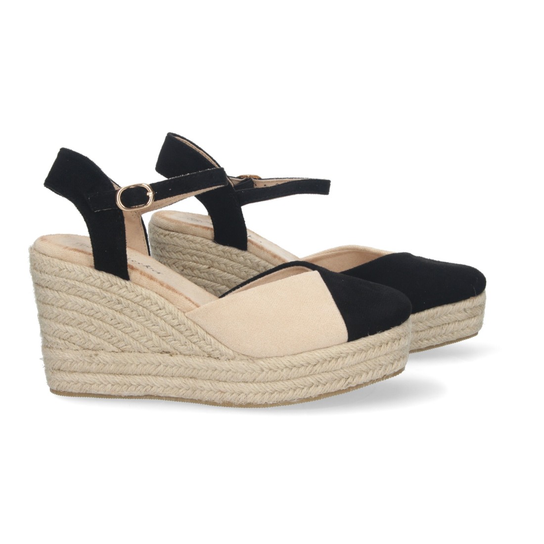 Sandalia de Cuña para Mujer, Comodas, Cuña de Yute, Pala Bicolor, y Cierre de Hebilla.
