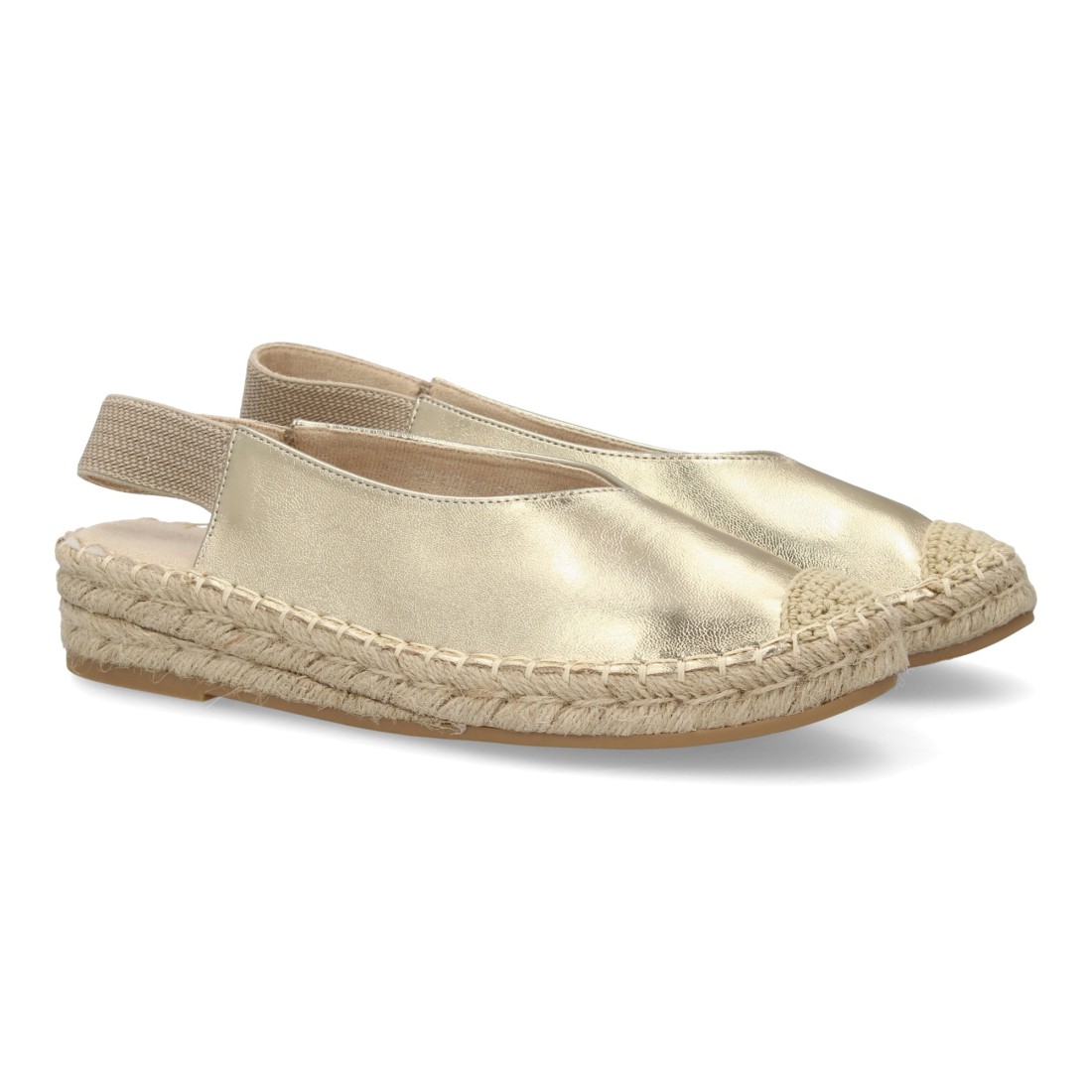 Alpargata de mujer con diseño clásico y cómodo, ideal para verano. Suela de yute trenzado, plano, ligera y cómoda. Cierre elástico. Estampado liso.