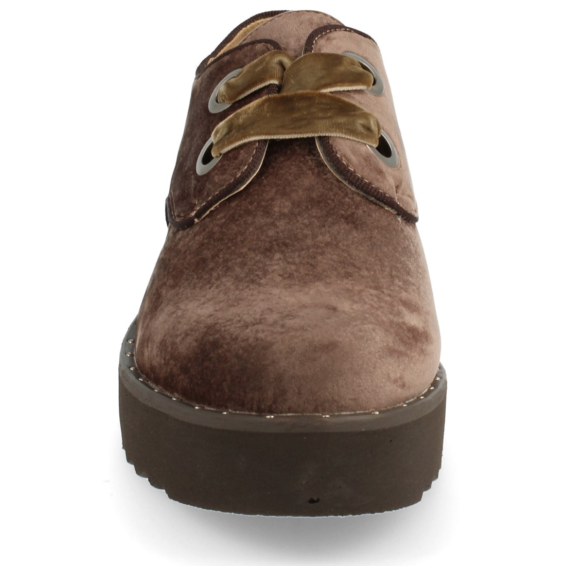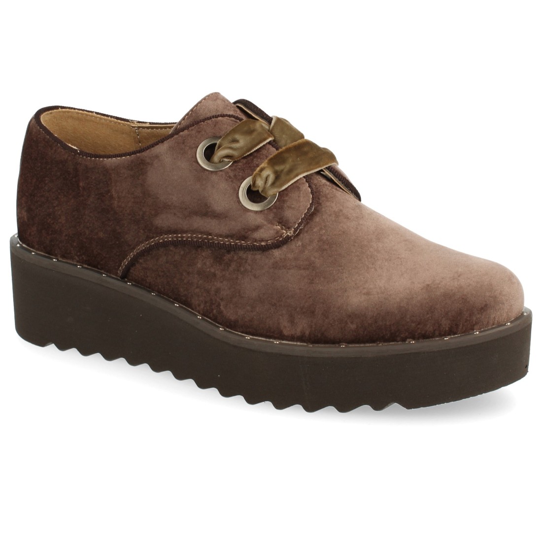 Zapato de plataforma con cordones planos de terciopelo. Altura: 4,5 cm.