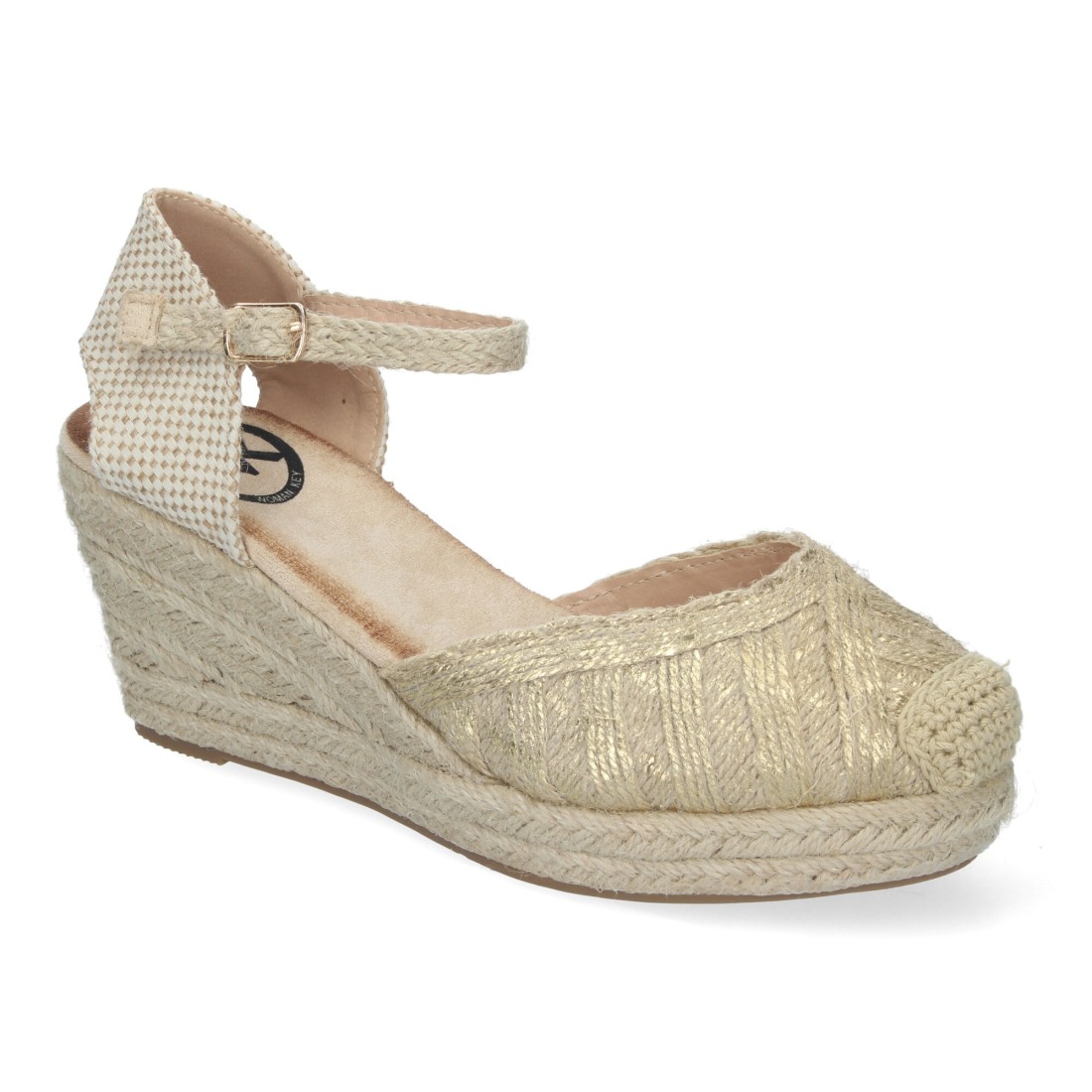 Sandalias de Cuña de Yute para Mujer, Cómodas y Elegantes, Punta Cerrada, con Adornos Trenzados en la Pala y Cierre de Hebilla.