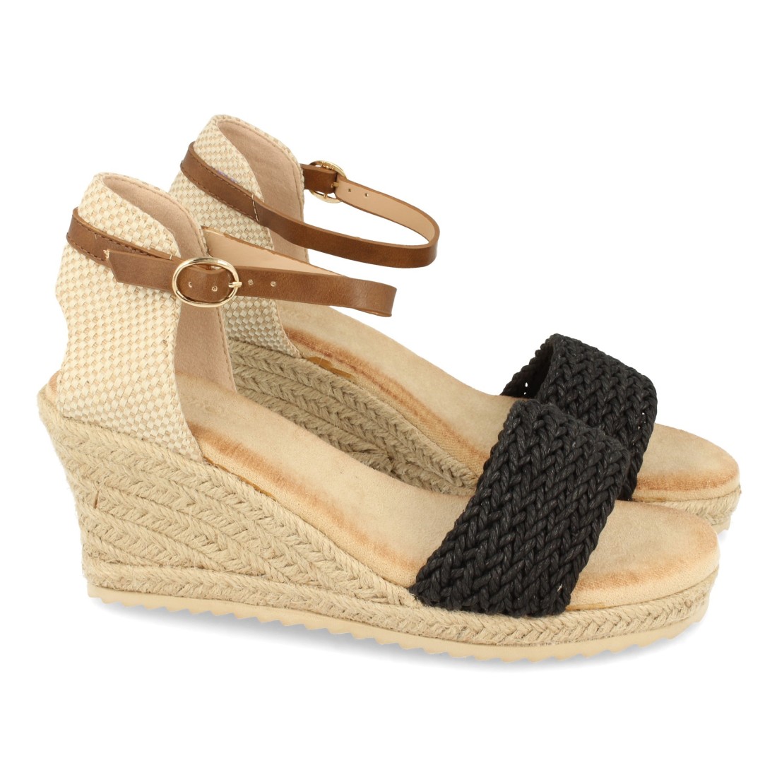 Sandalia de Cuña con Pala Rafia y Hebilla