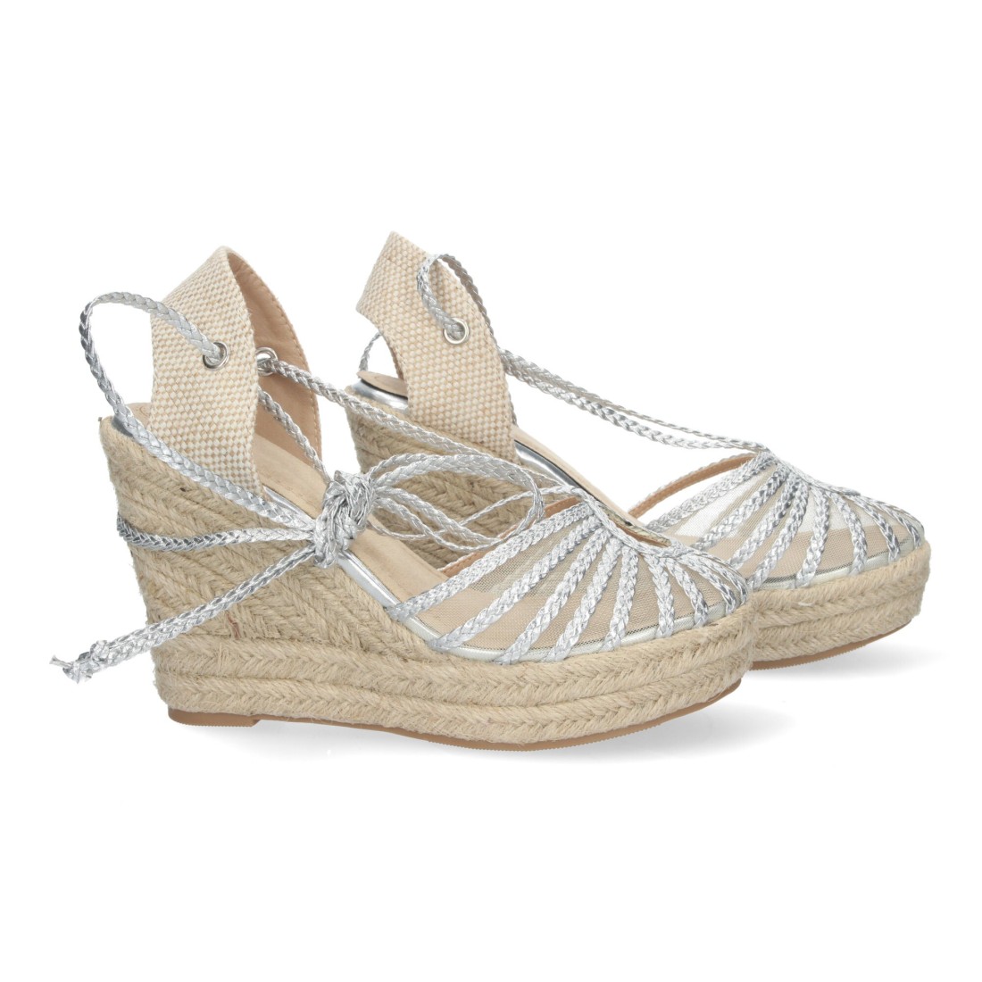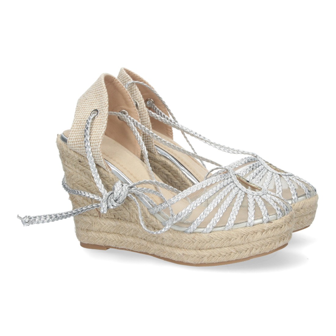 Sandalias de Cuña con Cordones Anudables al tobillo