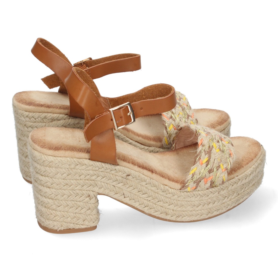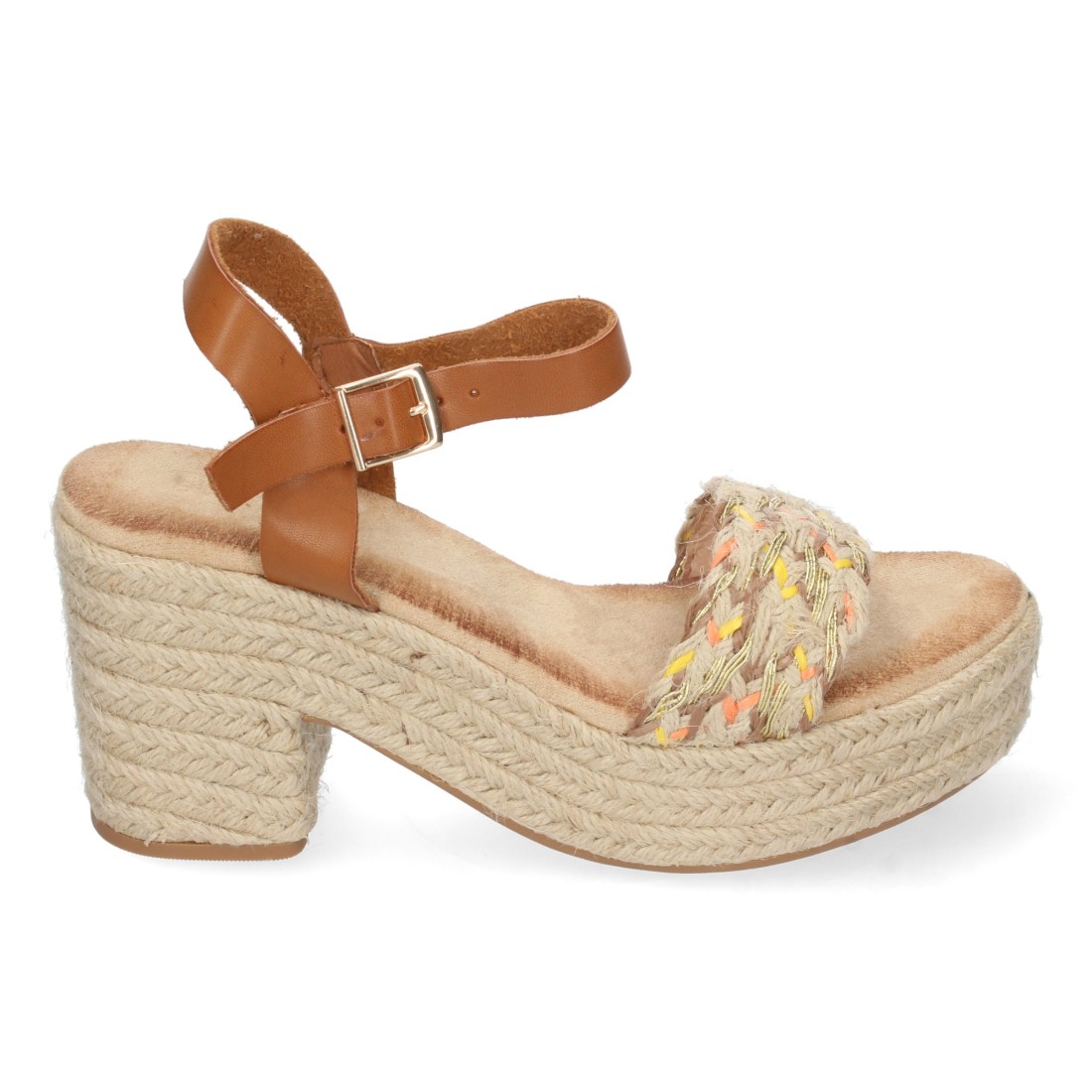 Sandalia de Tacón con Yute y Hebilla