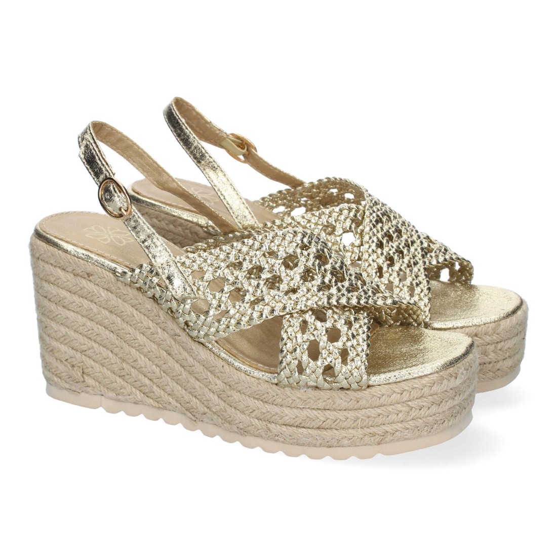 Sandalia de Cuña de Yute para Mujer, Comodas y Elegantes, Diseño Trenzado en la Pala y Cierre de Hebilla, Ideales para Primavera-Verano.