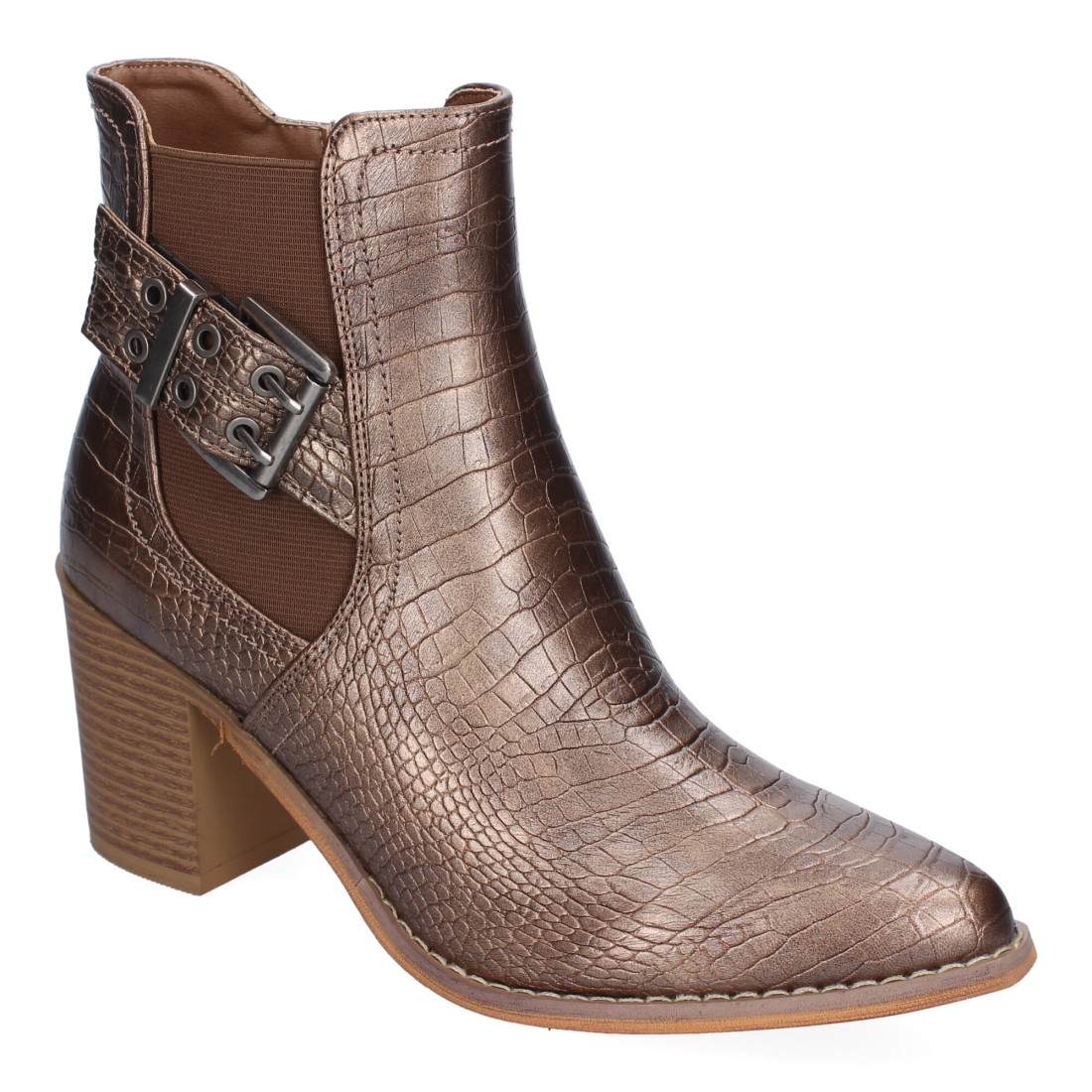 Botín de Tacón para Mujer, Comodos y Elegantes, Diseño de Estampado, Punta Redonda y Cierre de Cremallera Lateral.