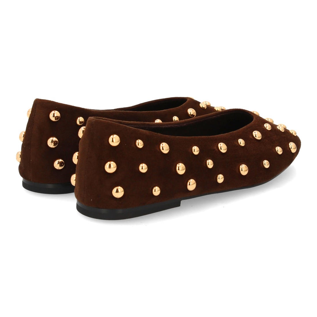 Bailarina elegante con tachuelas metálicas diseño moderno. Su punta fina y suela plana garantizan comodidad. Sin cierre, ideal para mujer temporada Otoño Invierno.