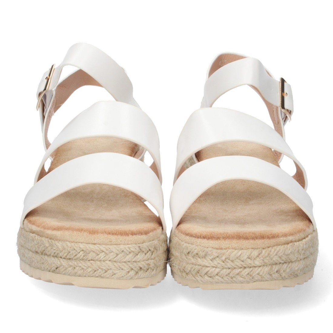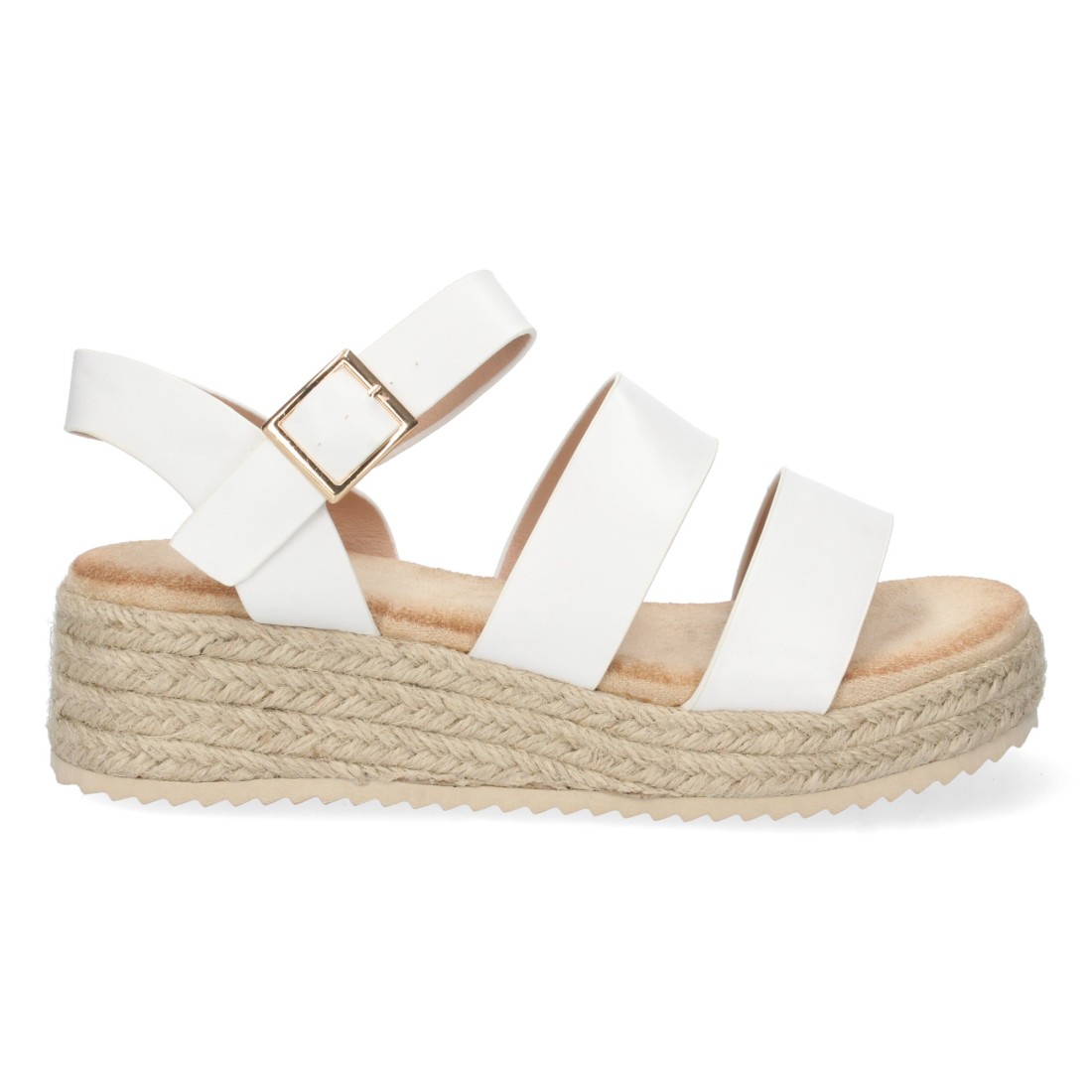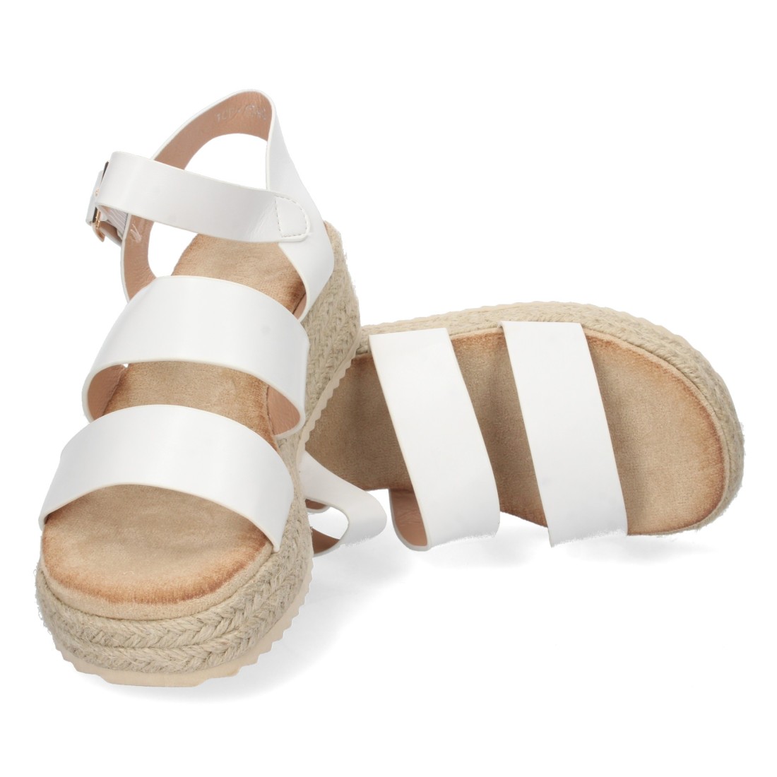 Sandalia de Plataforma para Mujer, Forrada de Yute, con Estampado Multicolor, y Cierre de Hebilla, Primavera Verano 2022