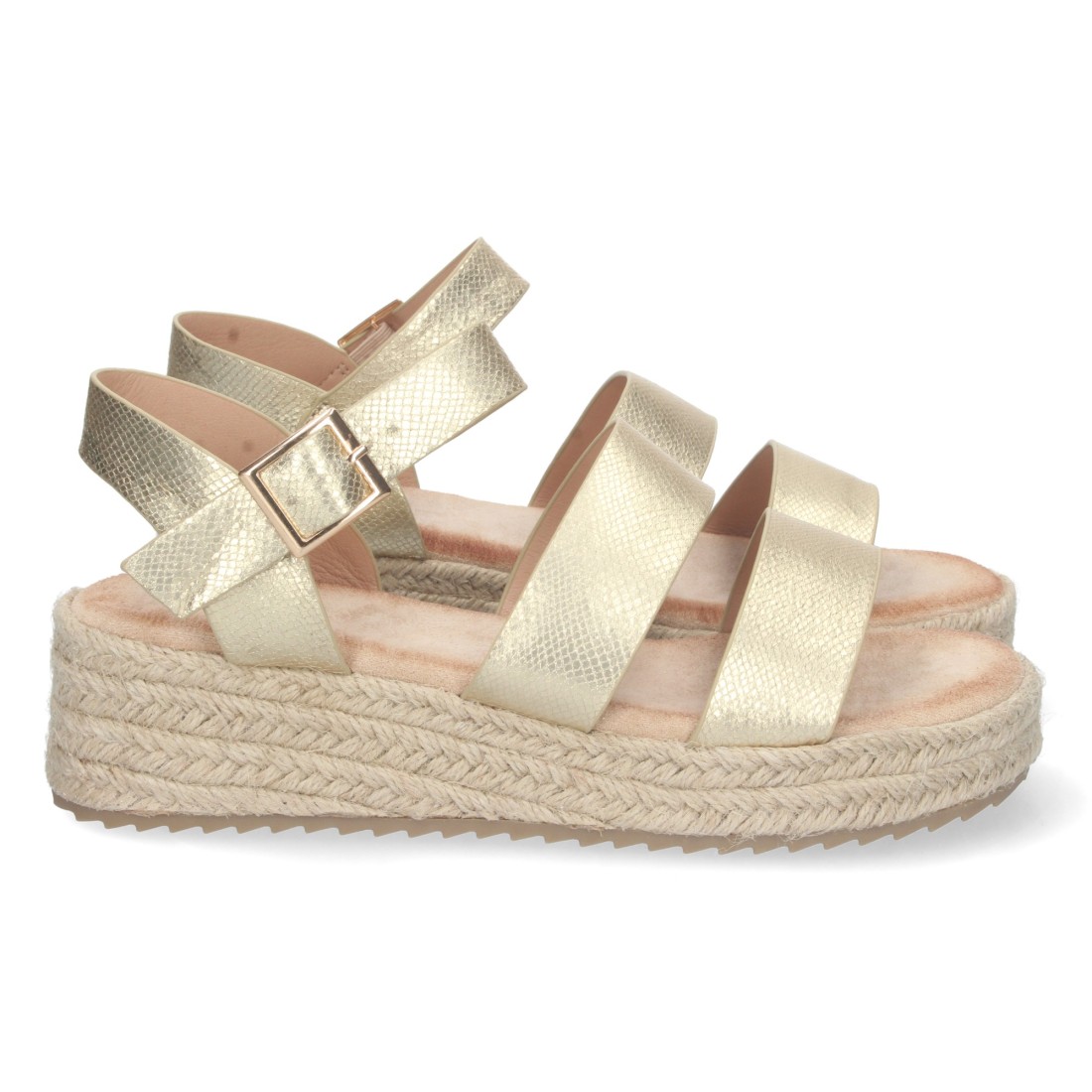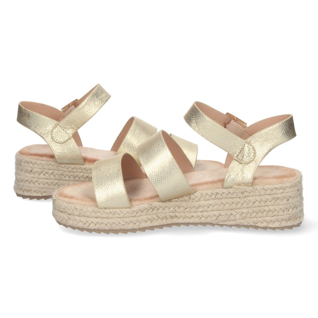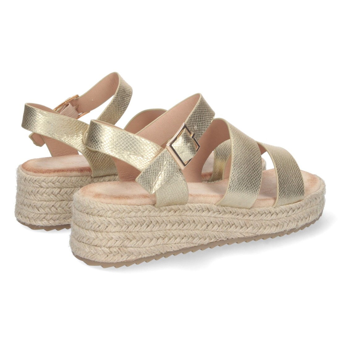 Sandalia de Plataforma para Mujer, Forrada de Yute, con Estampado Multicolor, y Cierre de Hebilla, Primavera Verano 2022