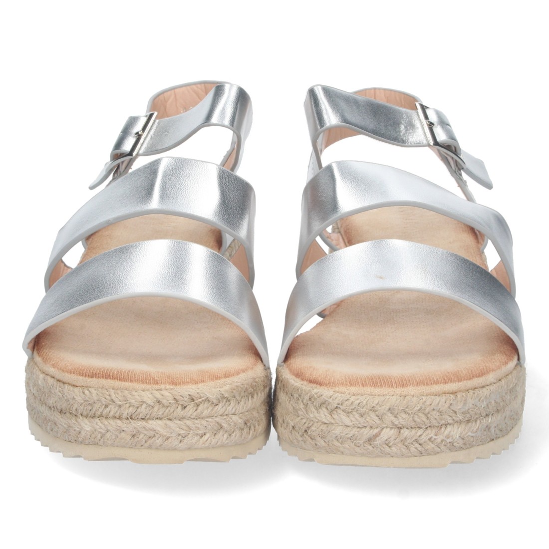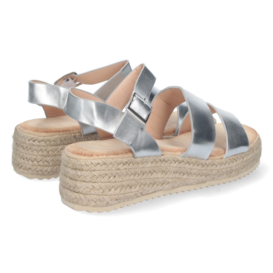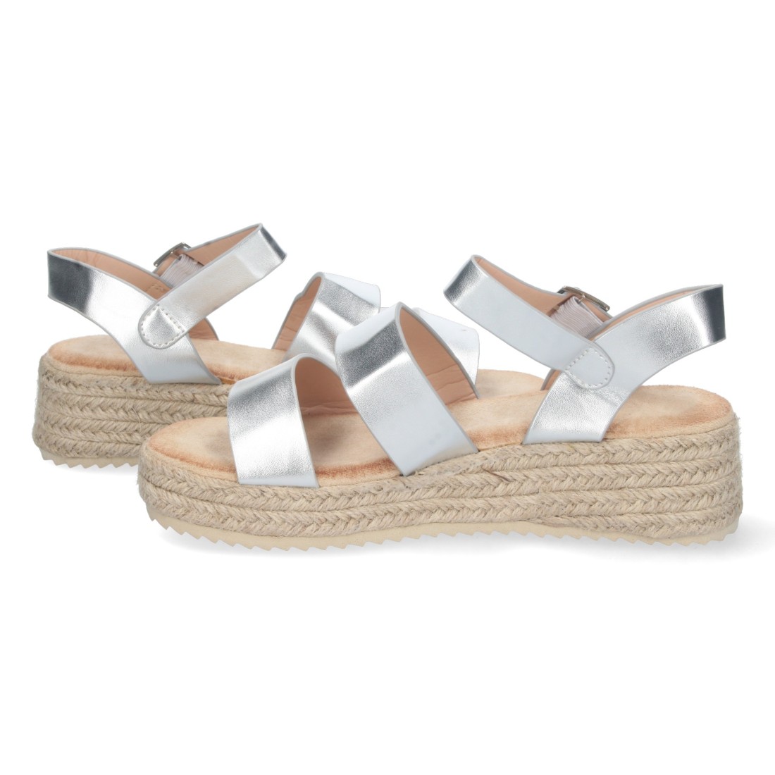 Sandalia de Plataforma para Mujer, Forrada de Yute, con Estampado Multicolor, y Cierre de Hebilla, Primavera Verano 2022