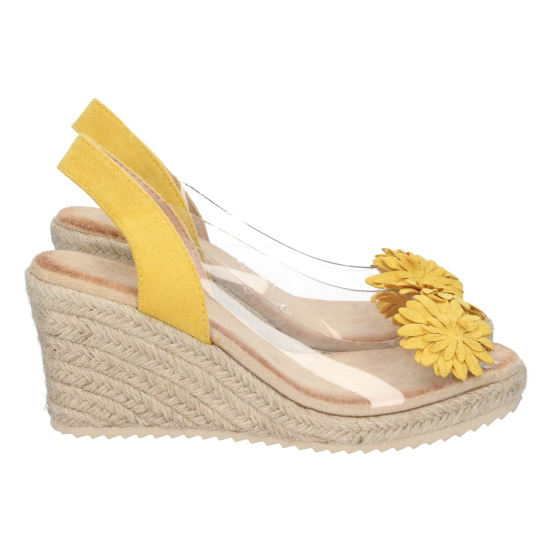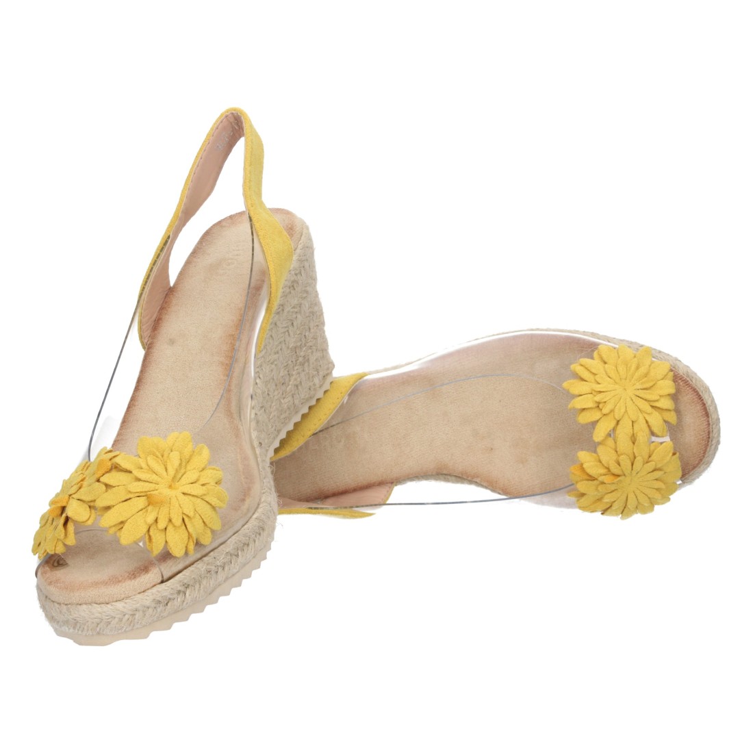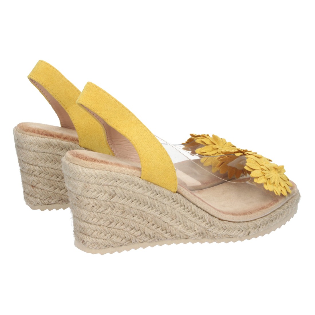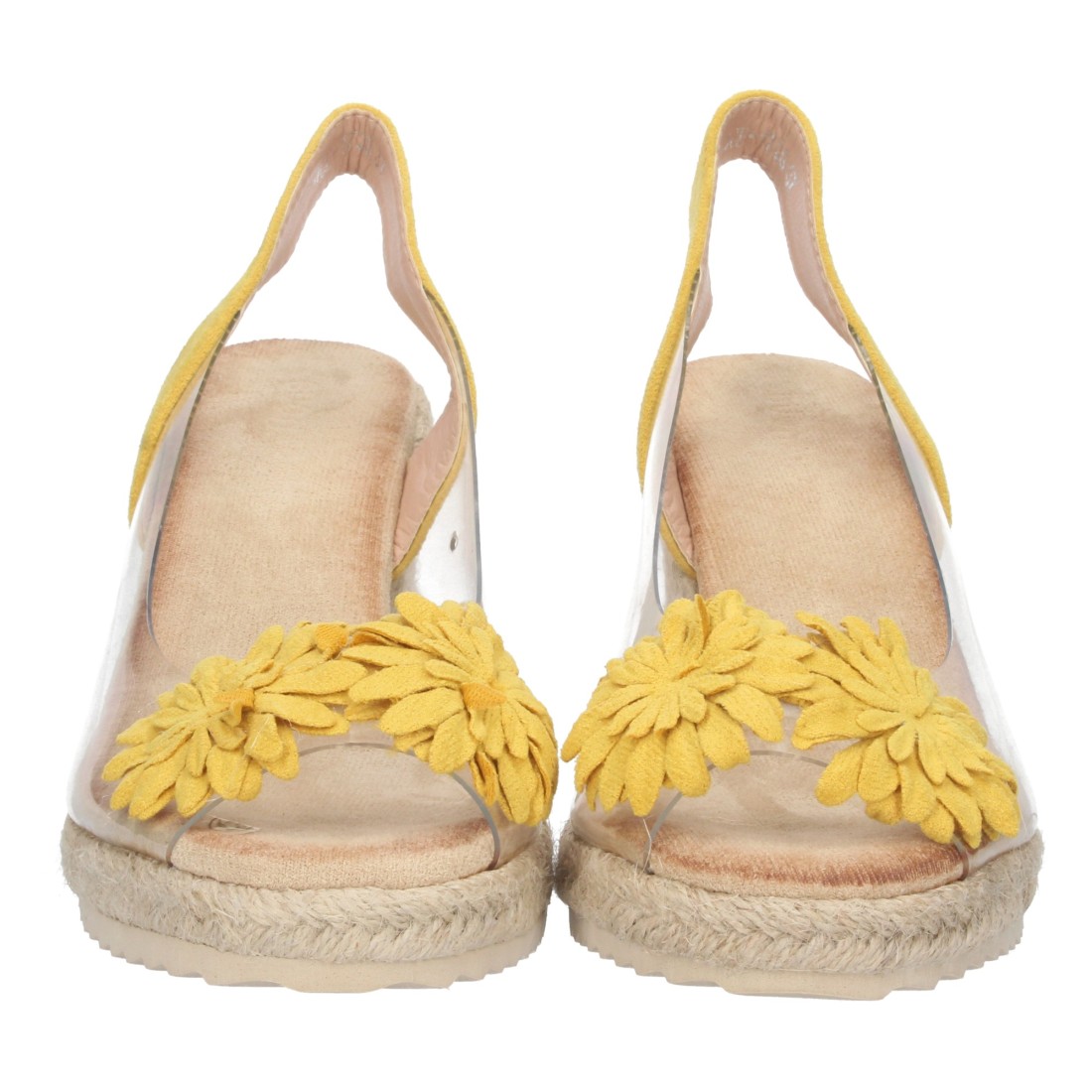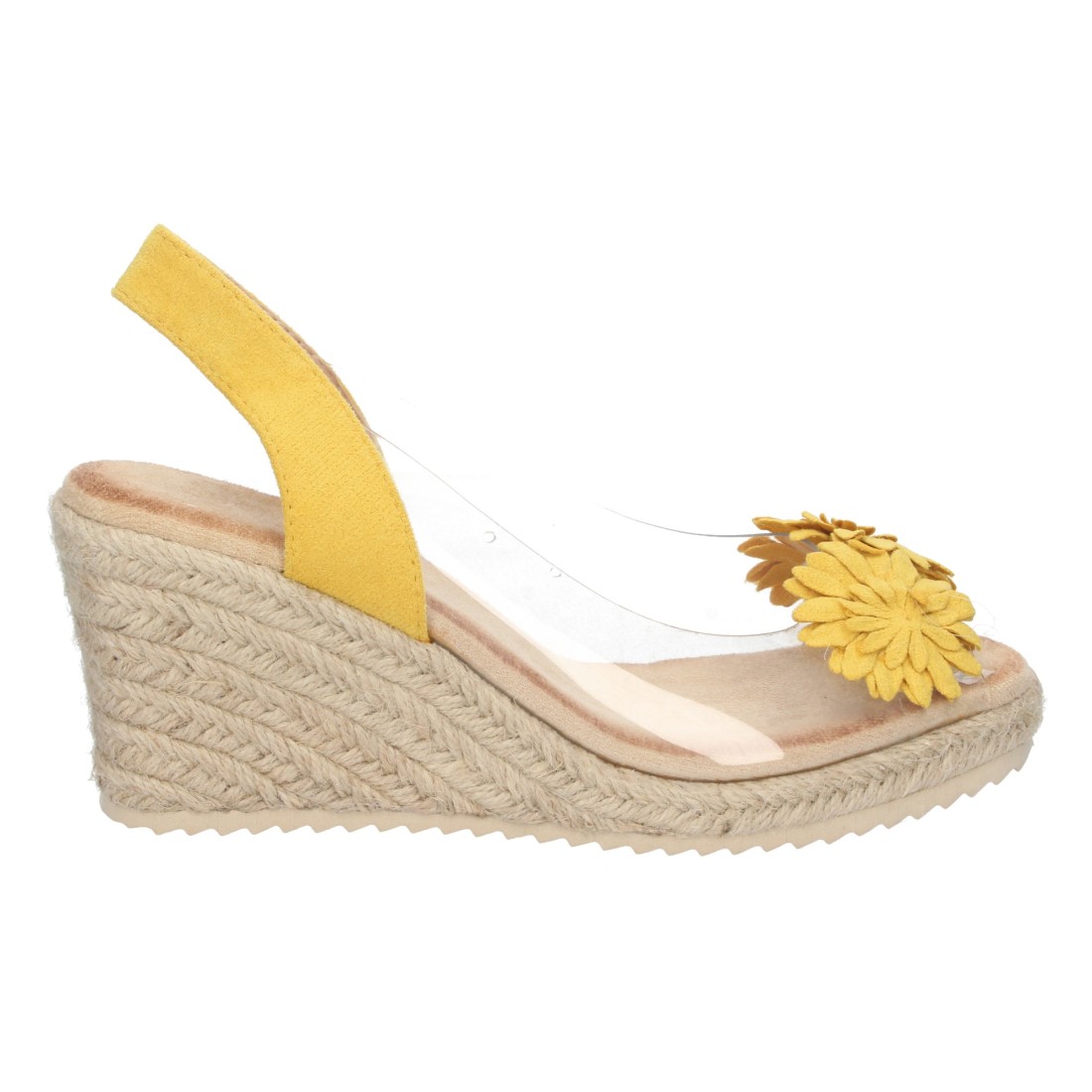 Sandalia de Cuña para Mujer, Forrada de Yute, con Flores en la Pala, y Vinilo Transparente en los Laterales, Primavera Verano 2022