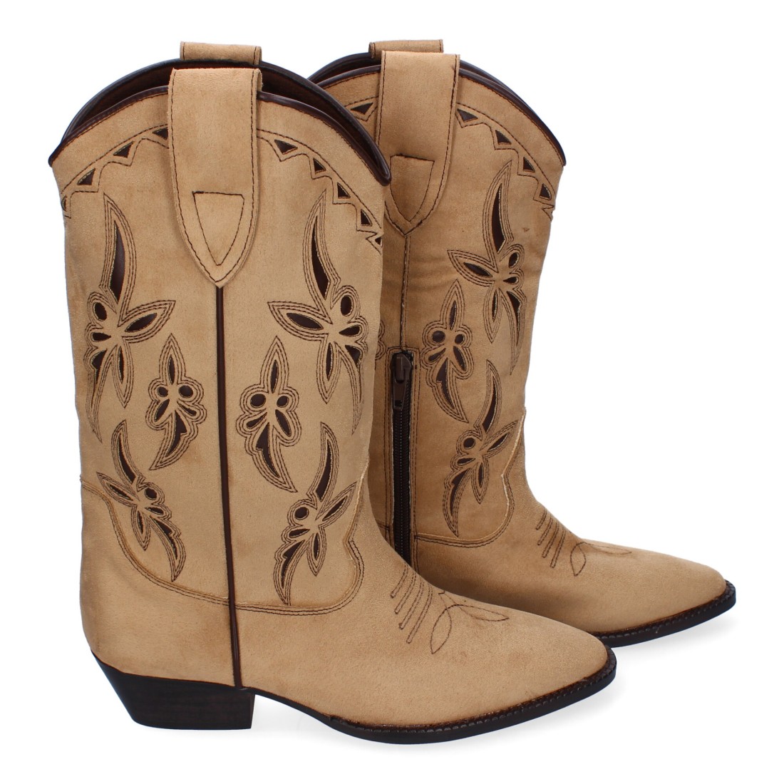 Botas de Mujer Elegantes con Tacón Campero y Adornos Bordados, Cierre Lateral con Cremallera, Puntera Fina