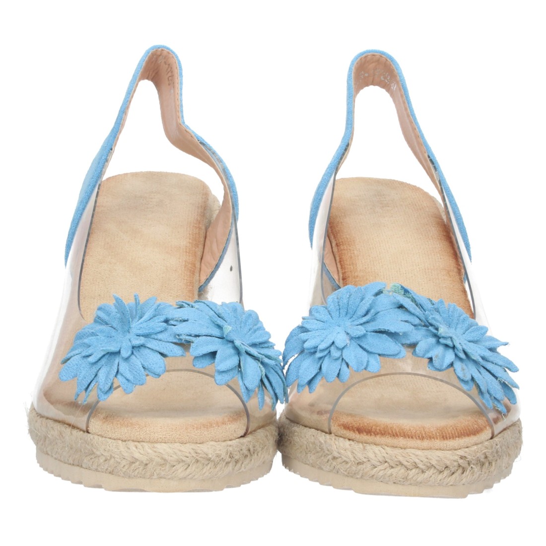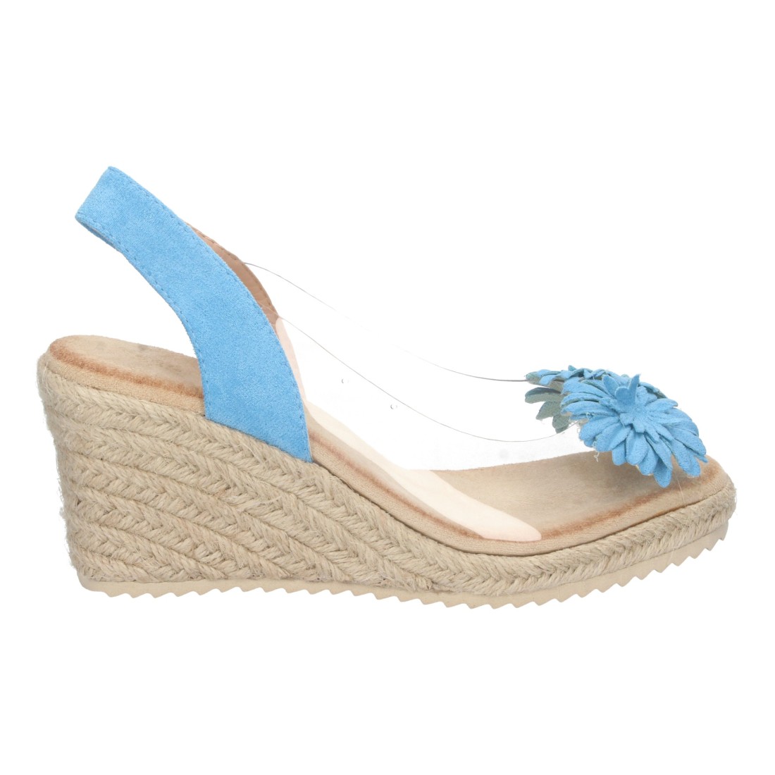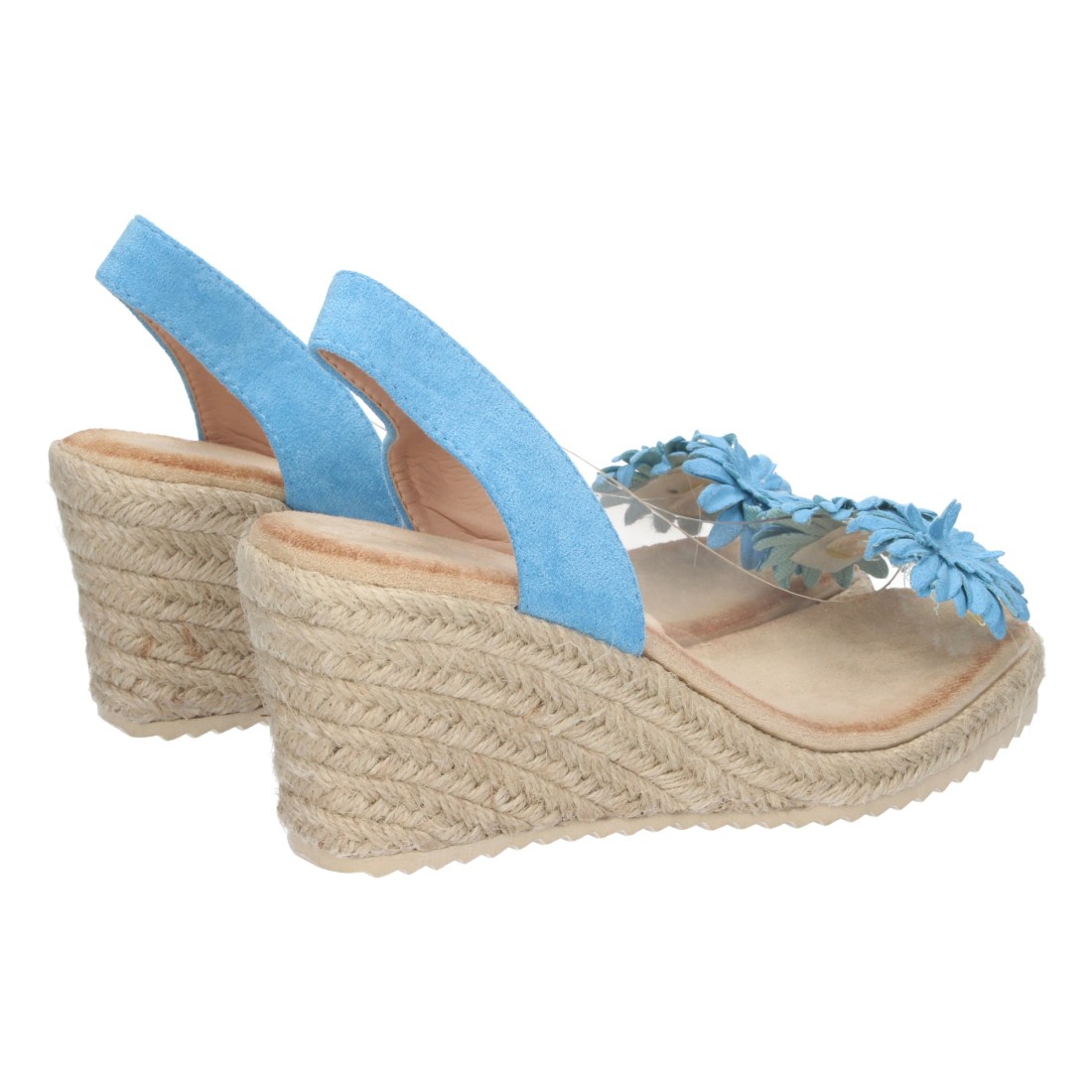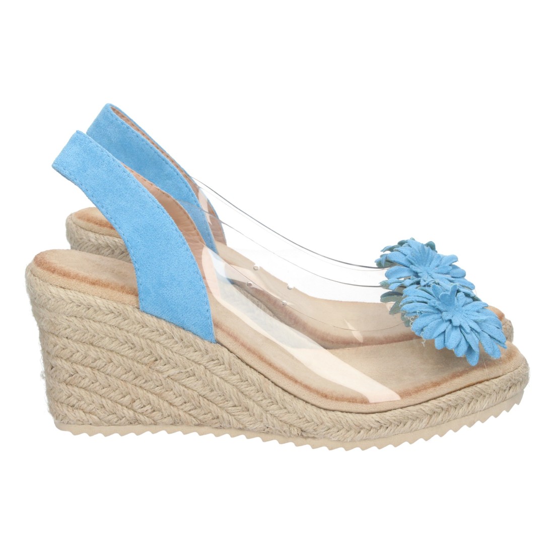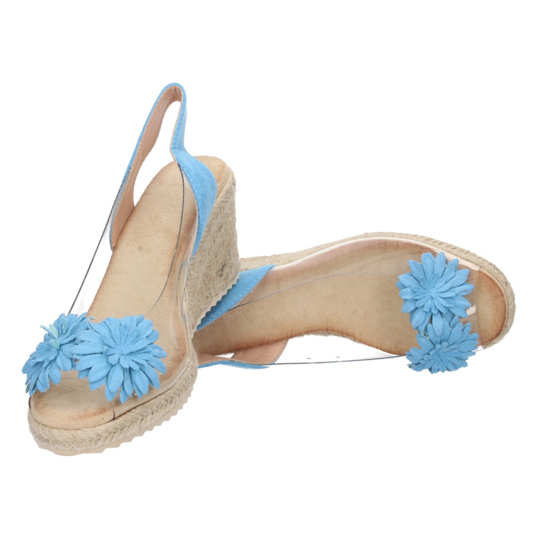 Sandalia de Cuña para Mujer, Forrada de Yute, con Flores en la Pala, y Vinilo Transparente en los Laterales, Primavera Verano 2022